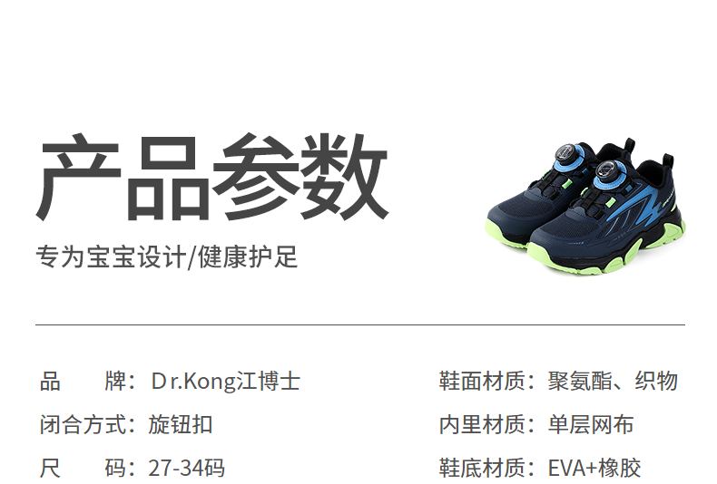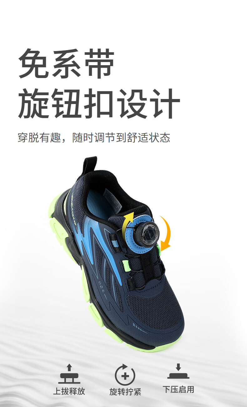Dr. Jiang (DR KONG) Dr. Jiang autumn trendy no-tie knob buckle shoelaces for boys and girls, children's outdoor sports shoes, blue 31