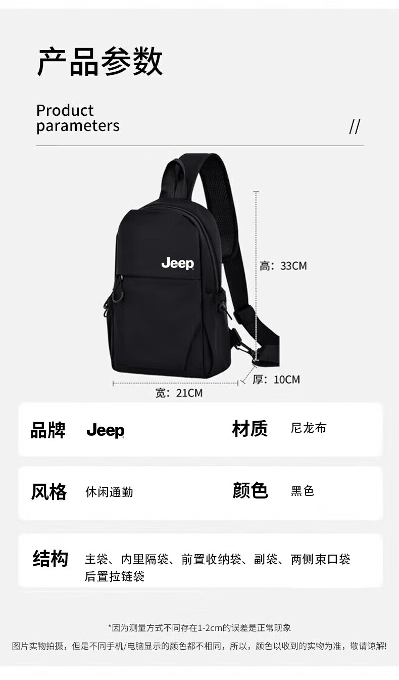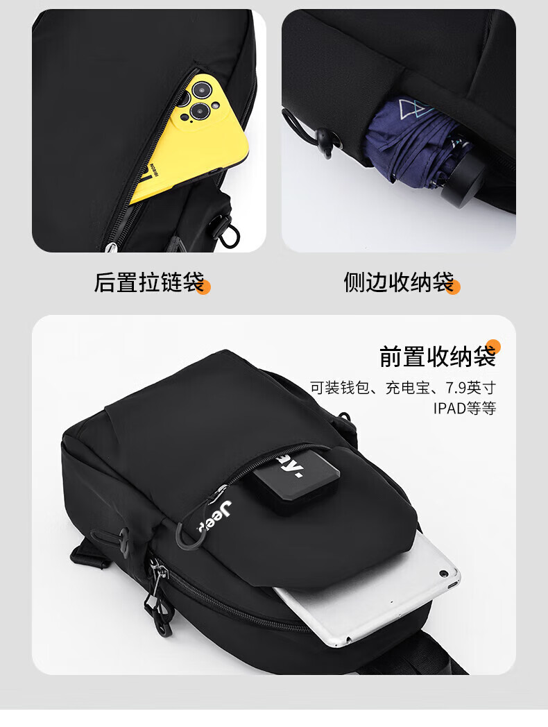 JEEP men's crossbody bag large capacity casual shoulder bag ipad mobile phone bag work commuting travel outdoor cycling chest bag
