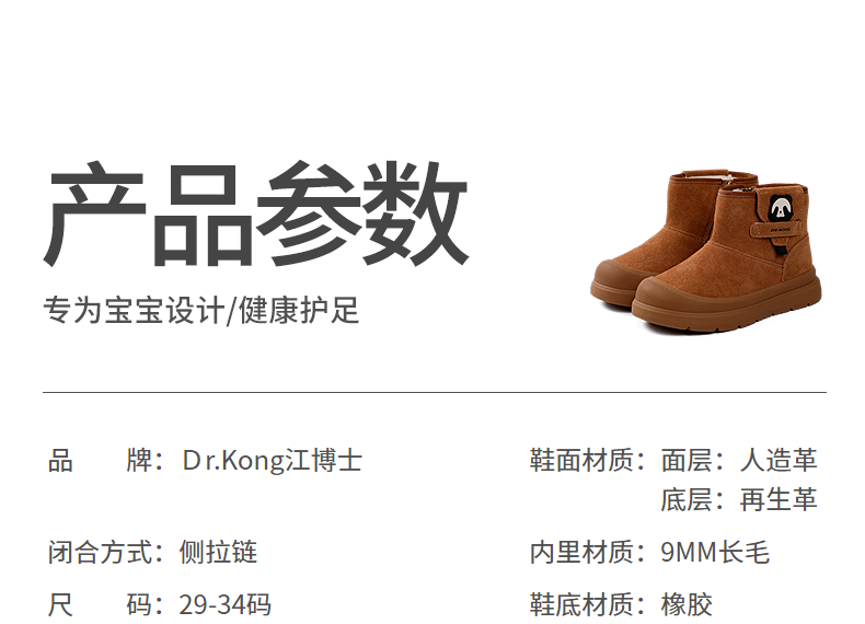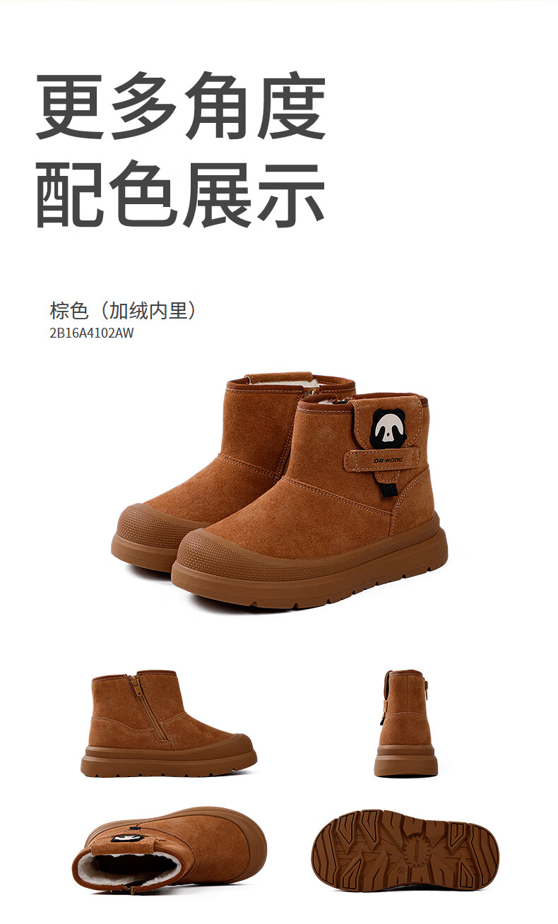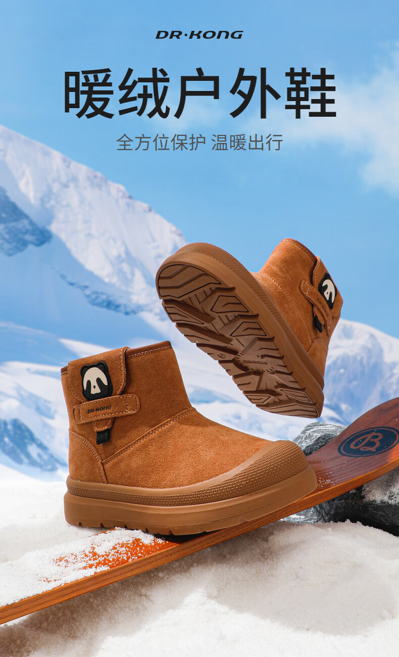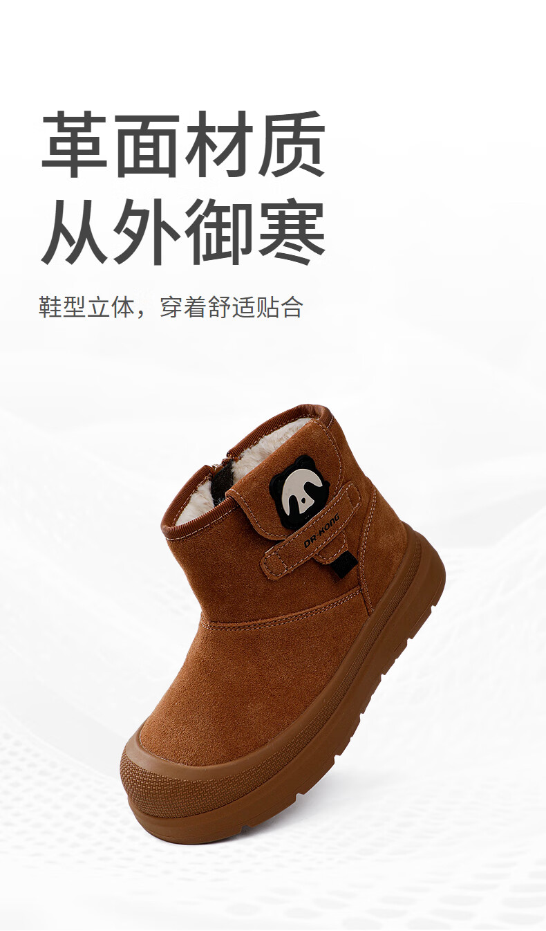 DR KONG Dr. Jiang boots winter girls' velvet warm cotton boots casual children's cotton shoes brown 29
