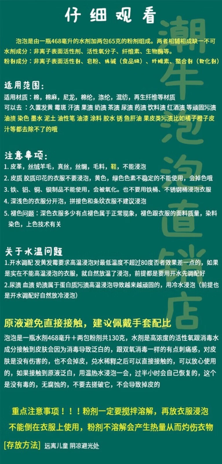 Chaoniu Bubble Laundry Detergent Removes Mold, Removes Yellow Spots, Removes Stains for Children, Can Be Used by Mothers and Infants 468ml 1 Bottle + 2 Bags of Powder