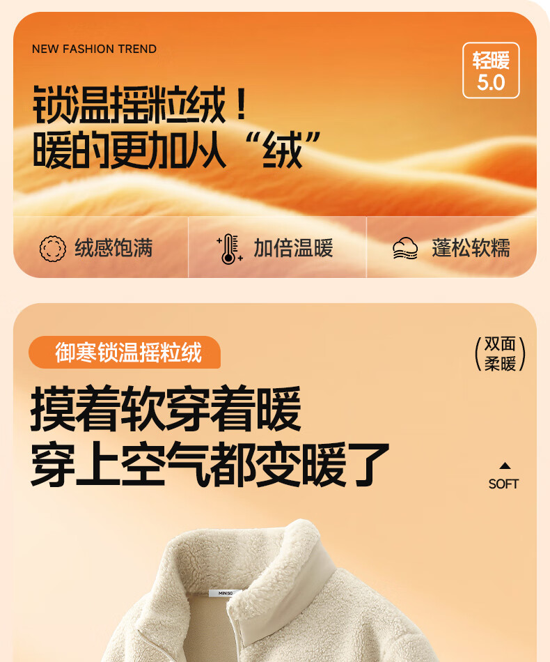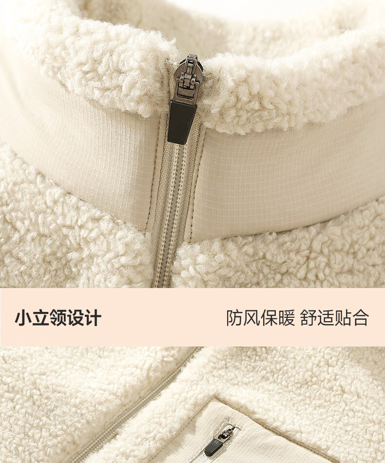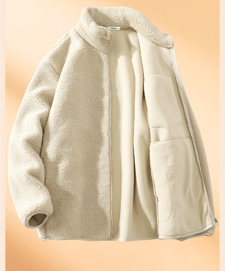 MINISO American trendy polar fleece casual jacket for men and women, winter thickened warm fleece jacket, palm green L