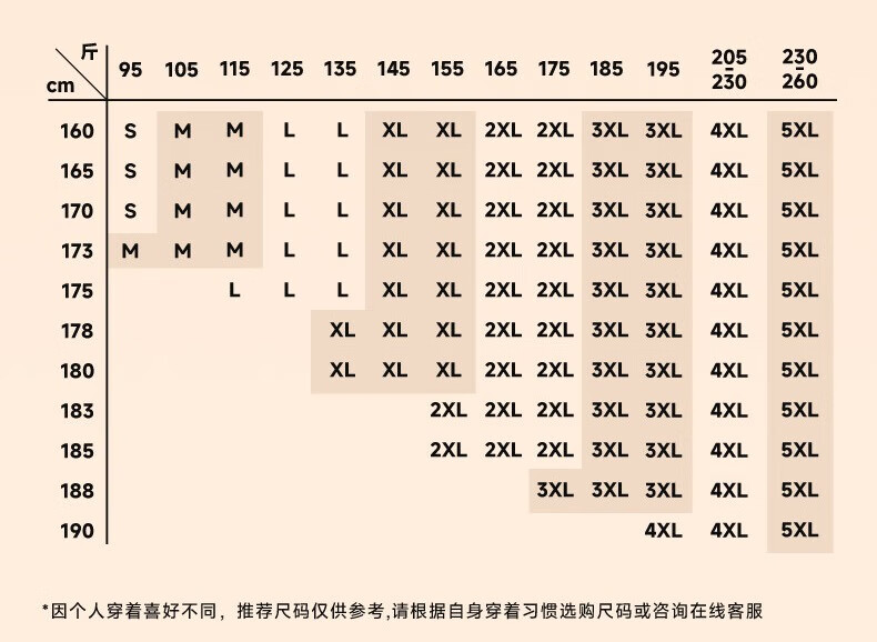 China (cm) 160-165/84-86 165-170 / 88-90 167-172 / 92-96 168-173 / 98-102 170-176 / 106-110