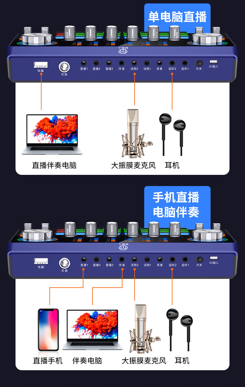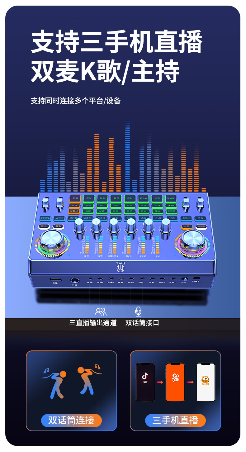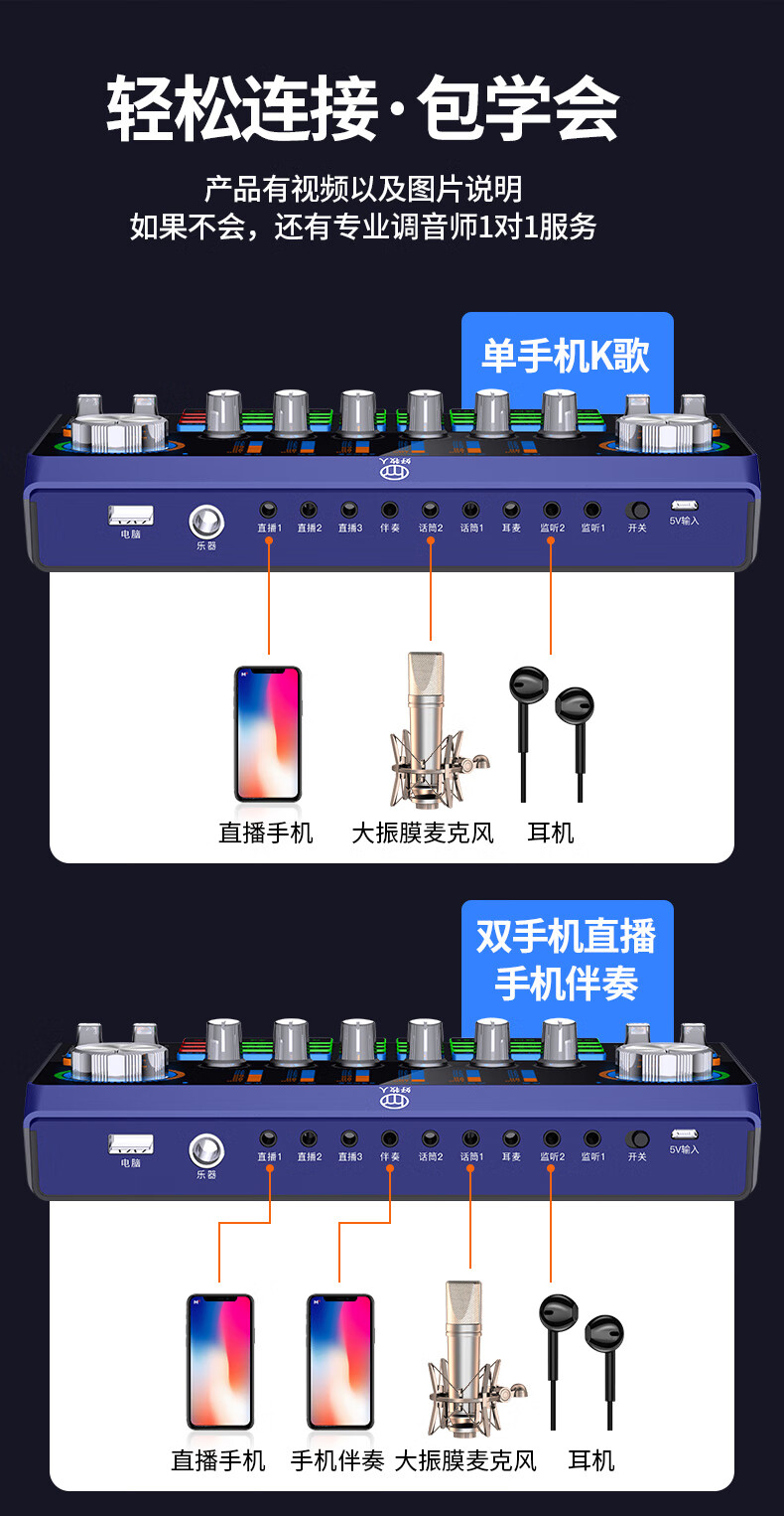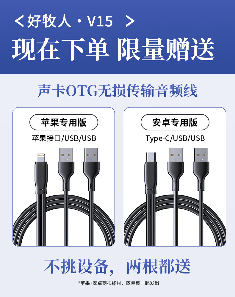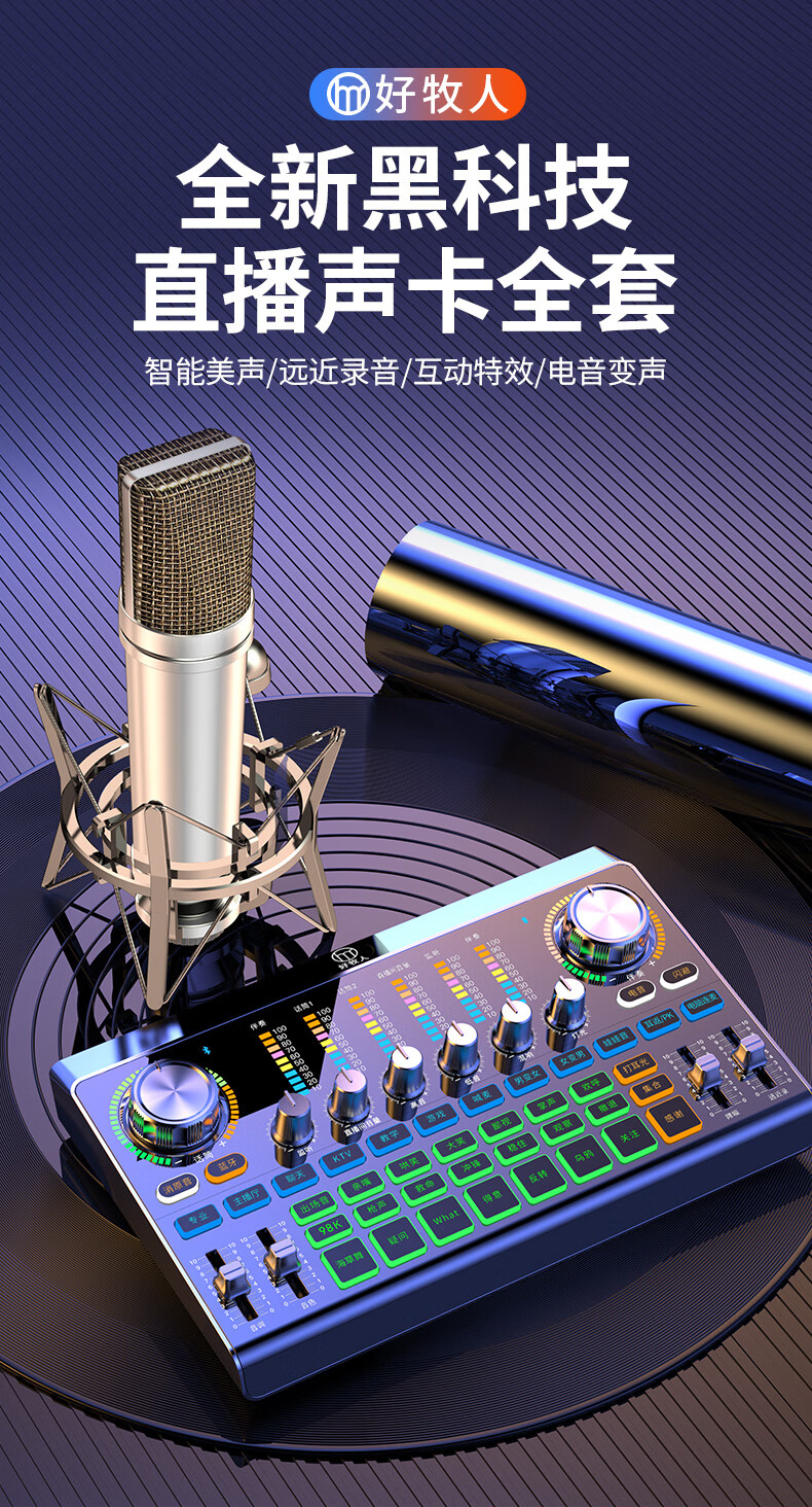 Good Shepherd V15 sound card set mobile phone live broadcast equipment complete set of karaoke singing and goods artifact condenser microphone headset anchor national Douyin vlog wireless recording microphone standard version - black (high-definition pickup microphone + nine-core chip sound card)
