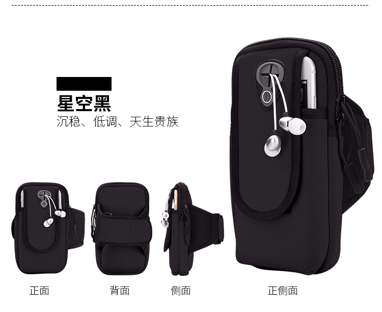 Jiahuiyuan Men's and women's sports and running key-holding mobile phone sleeve arm-type arm bag strap hangs on the arm and wears an arm bag, black (large 5-6 inch mobile phone)