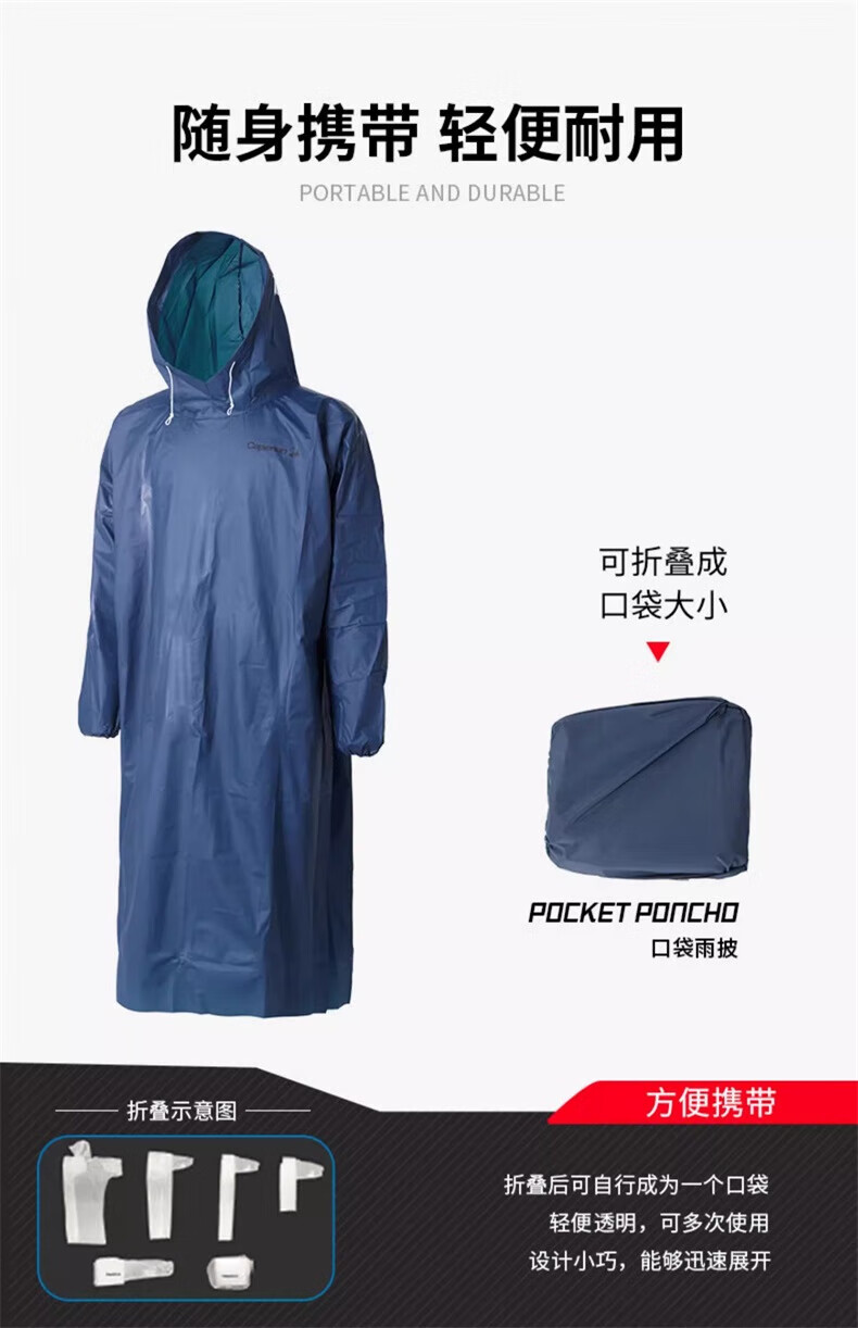 Decathlon fishing folding raincoat for adults transparent long full body waterproof portable men and women outdoor non-disposable-1803104