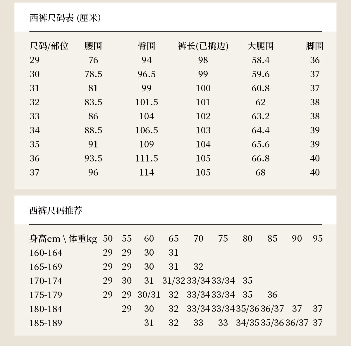 China (cm) 160-165/84-86 165-170 / 88-90 167-172 / 92-96 168-173 / 98-102 170-176 / 106-110