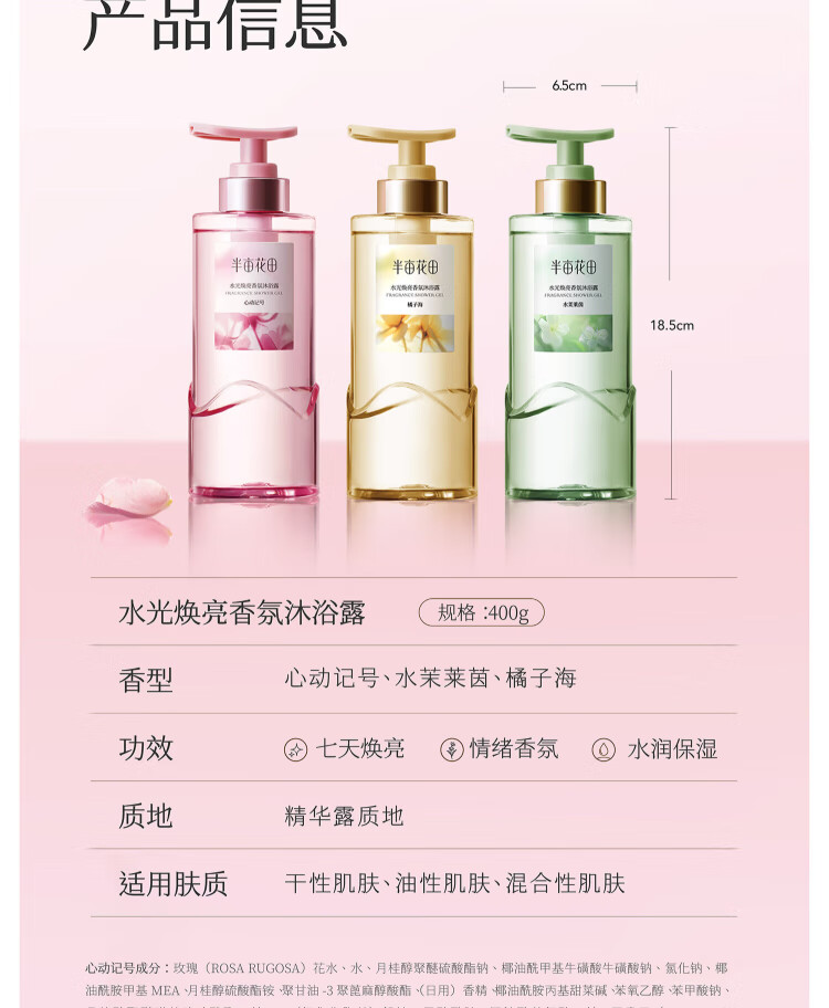 Half Acre Flower Field 50% Rose Hydrosol Watery Brightening Fragrance Shower Gel 100g