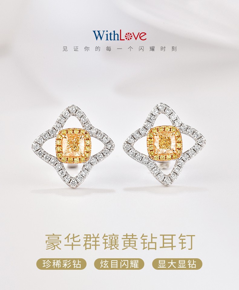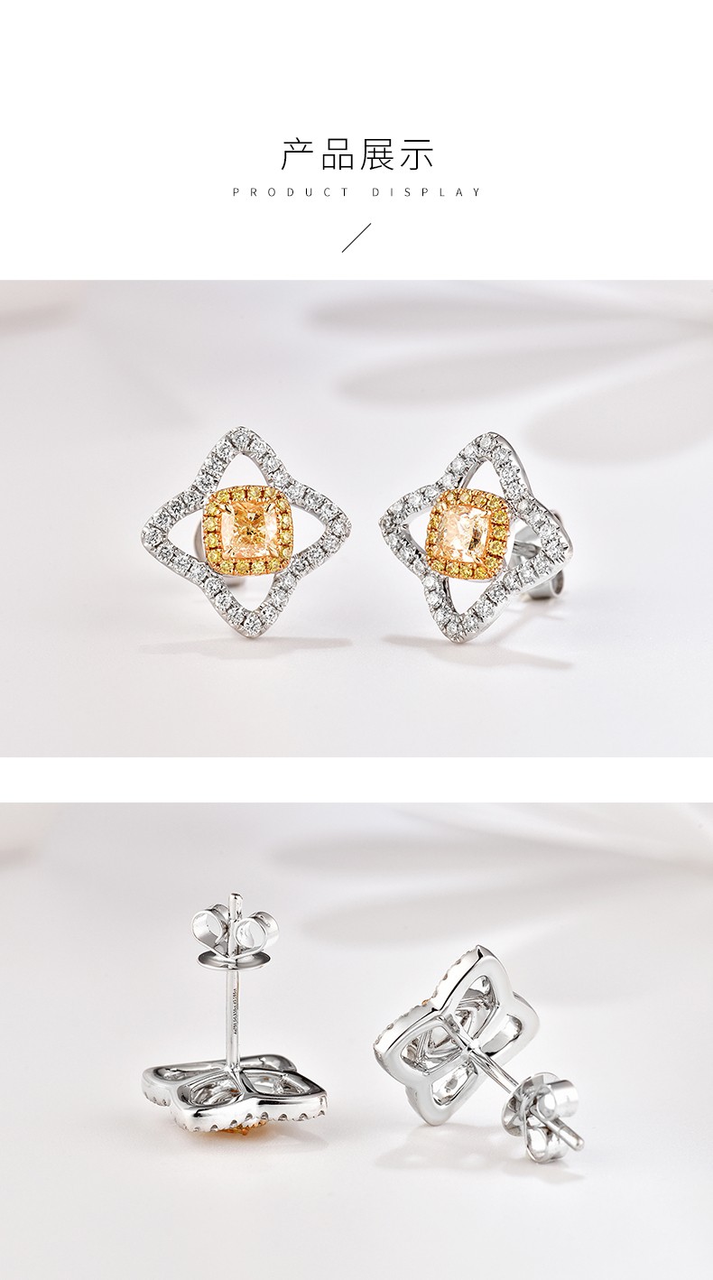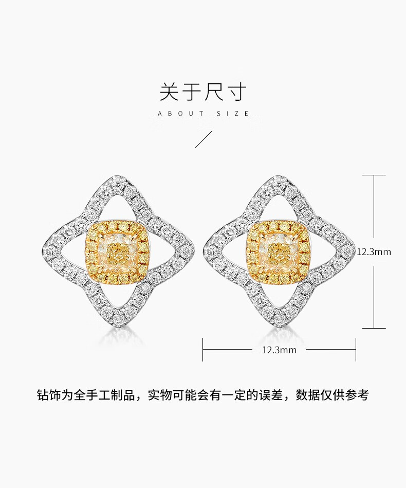 WithLove White 18K Gold Cushion Shape Intense Yellow Diamond Flower Shape Earrings Group Set Diamond Earrings Genuine Gift for My Girlfriend Total 75 Points White 18K Gold/Ready Stock