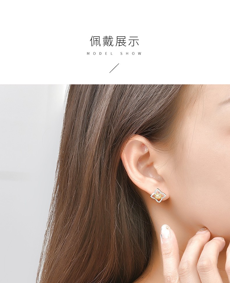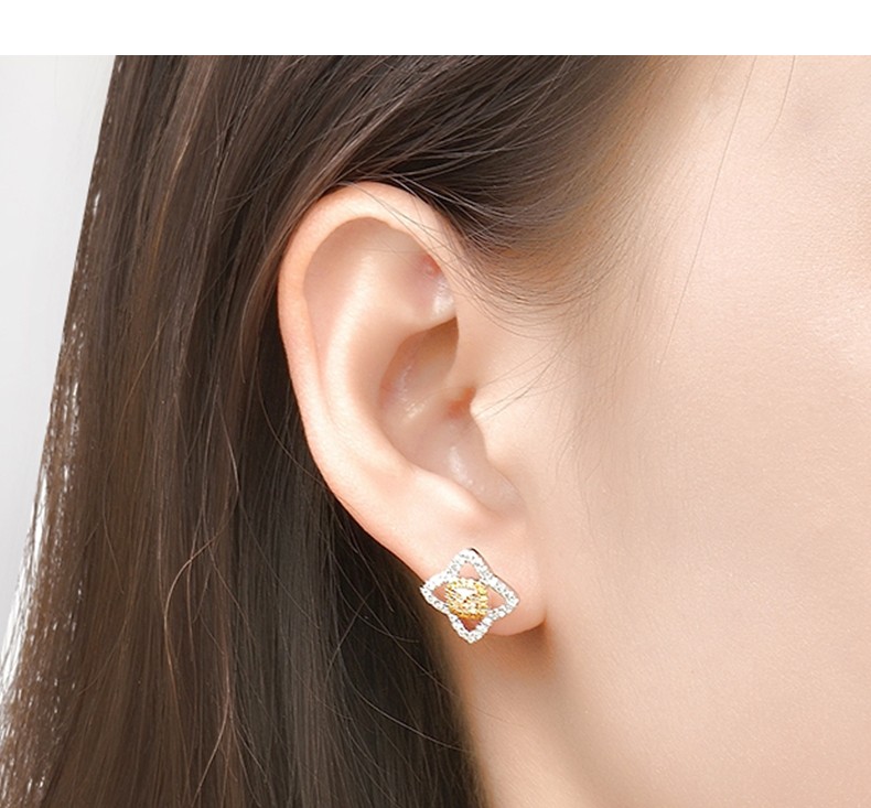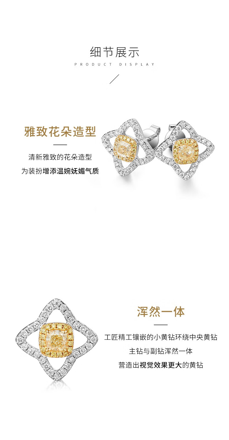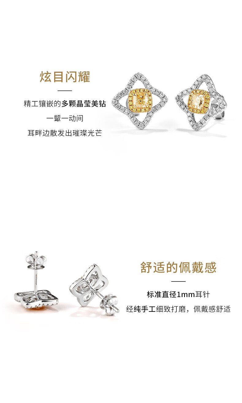 WithLove White 18K Gold Cushion Shape Intense Yellow Diamond Flower Shape Earrings Group Set Diamond Earrings Genuine Gift for My Girlfriend Total 75 Points White 18K Gold/Ready Stock