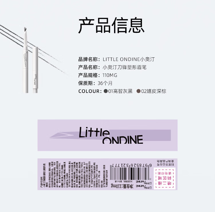 Little Ondine Blade Shaping Eyebrow Pencil 02 Hippie Dark Brown Eyeliner Waterproof, Sweatproof and Not Easy to Smudge (Pocket-On) Christmas Gift
