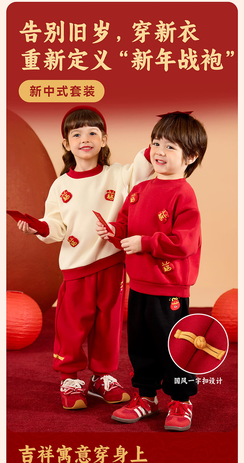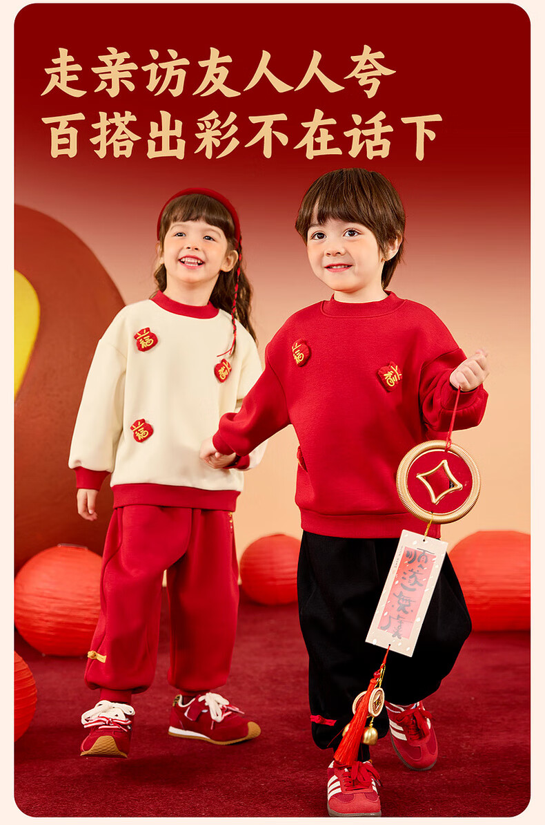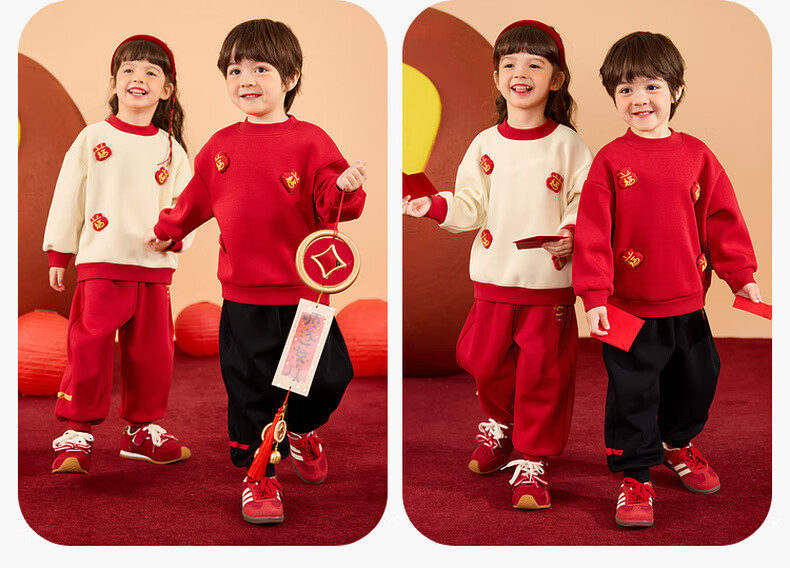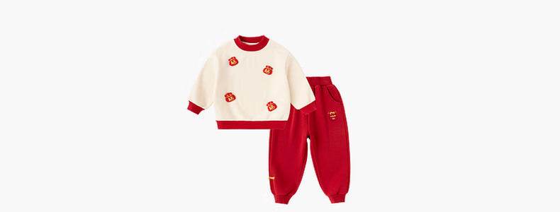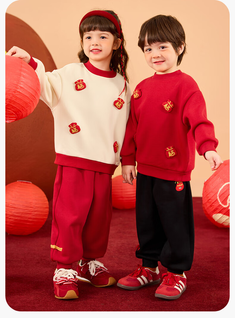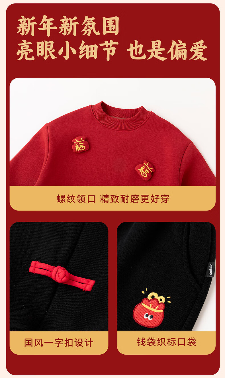 Dudujia Boys' Suit Winter Girls' Sweater Pants Winter New Warm Children's Chinese New Year Clothes Festive Red 110