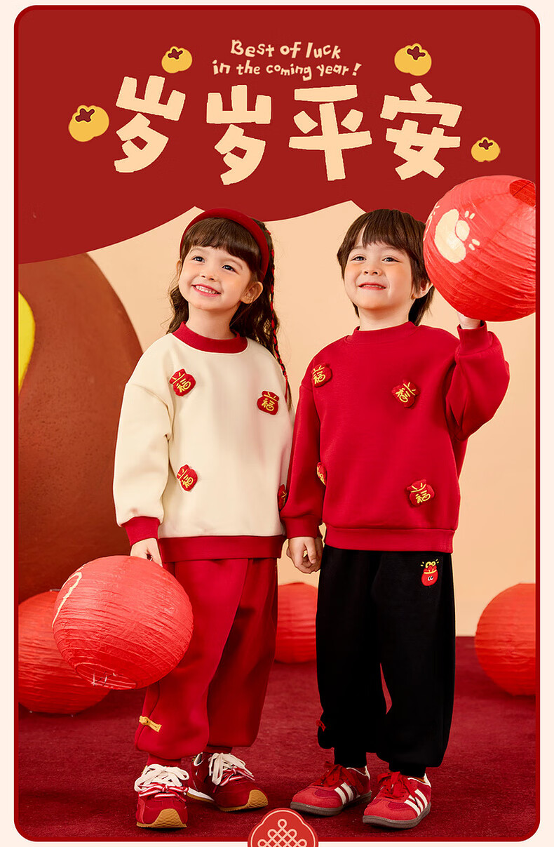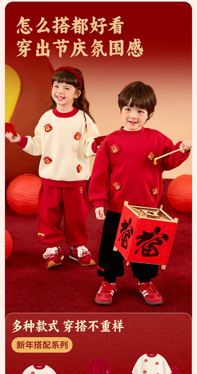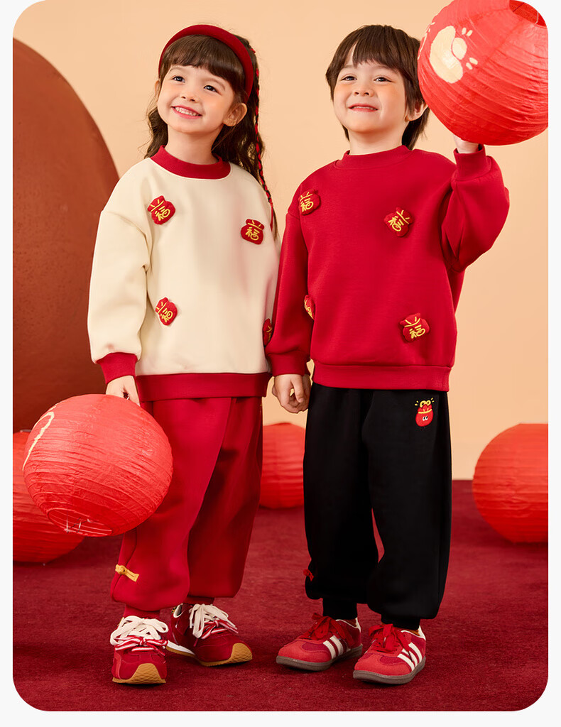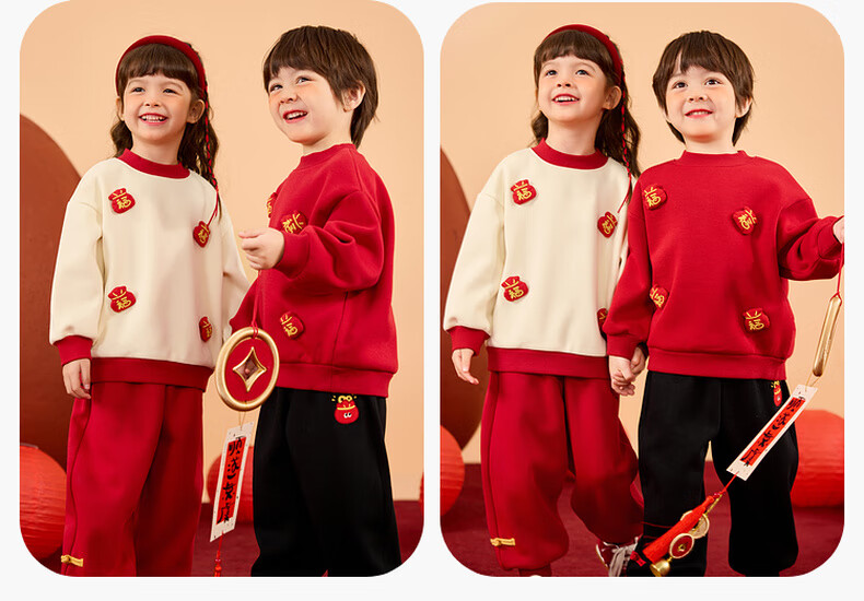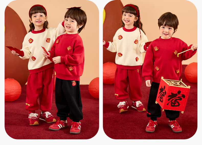 Dudujia Boys' Suit Winter Girls' Sweater Pants Winter New Warm Children's Chinese New Year Clothes Festive Red 110
