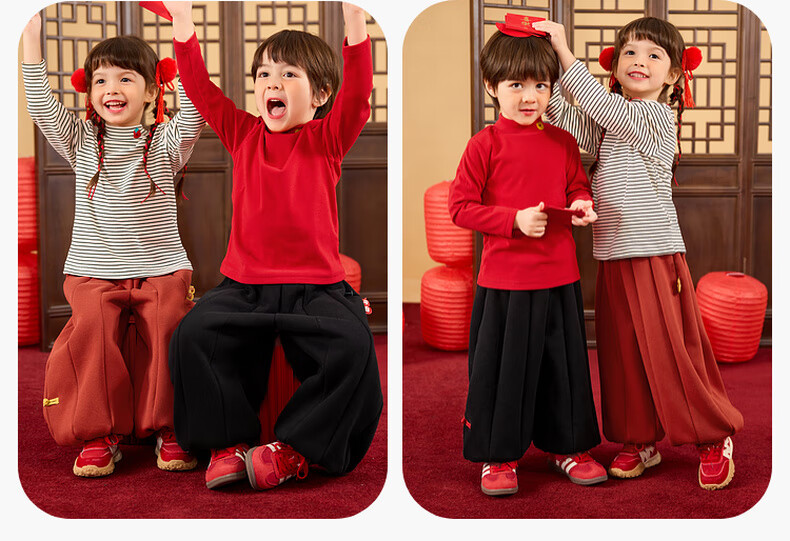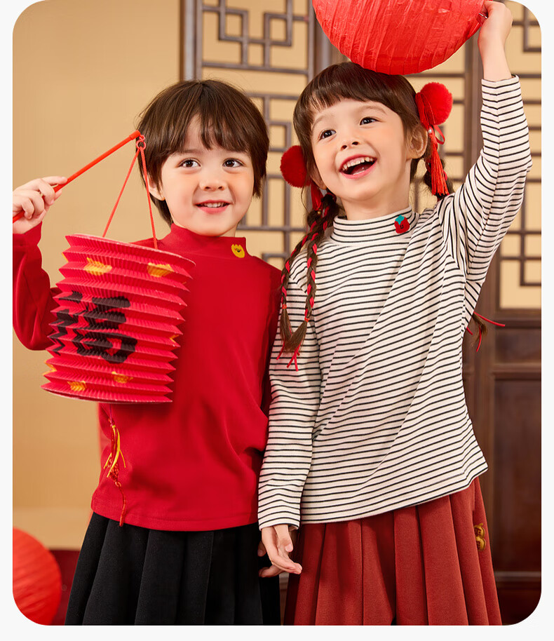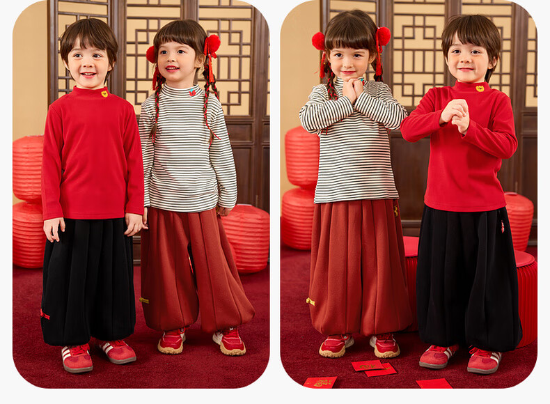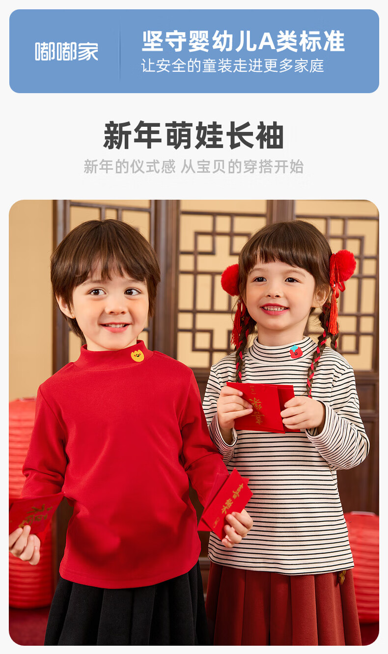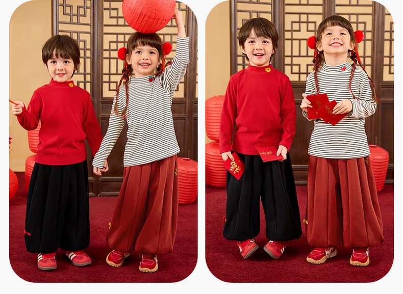 Dudujia children's New Year's greeting clothes baby winter long-sleeved T-shirt boys and girls New Year clothes baby festive children's clothing red 100
