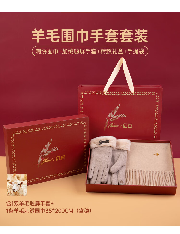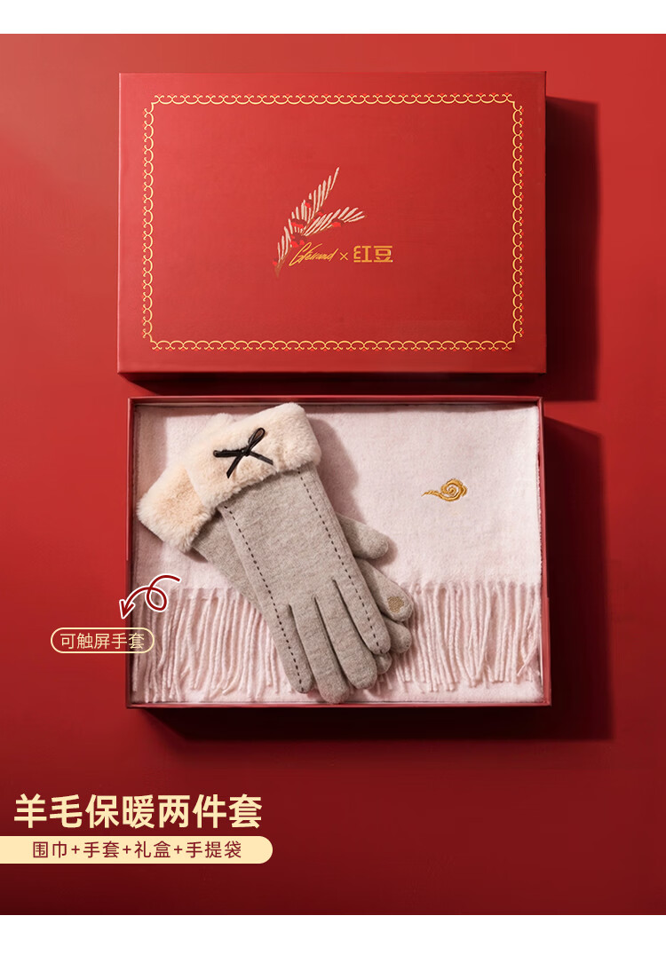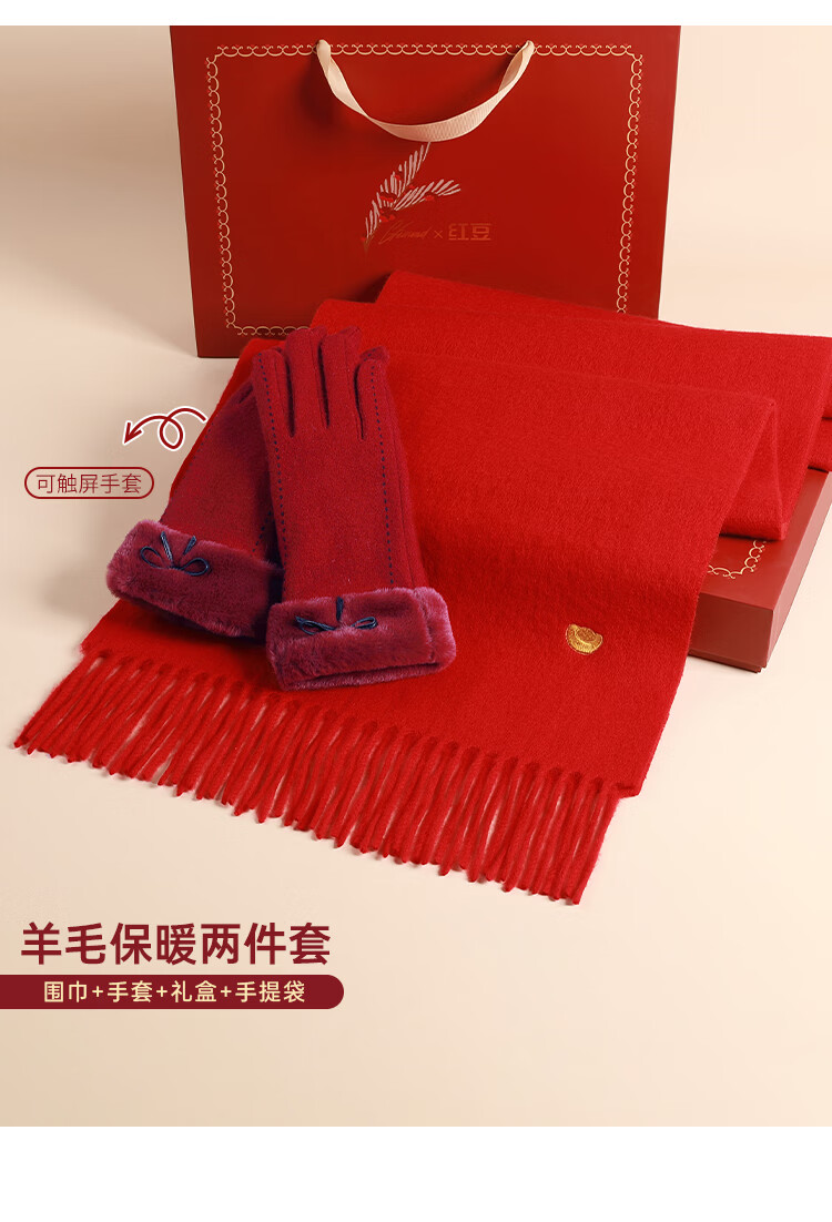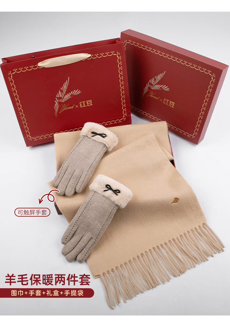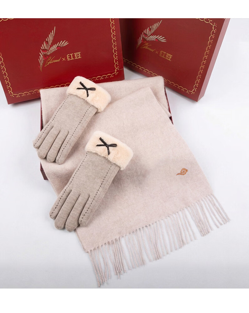 Hodo 100% wool scarf for women plus velvet gloves gift box warm suit New Year's gift for girlfriend's birthday