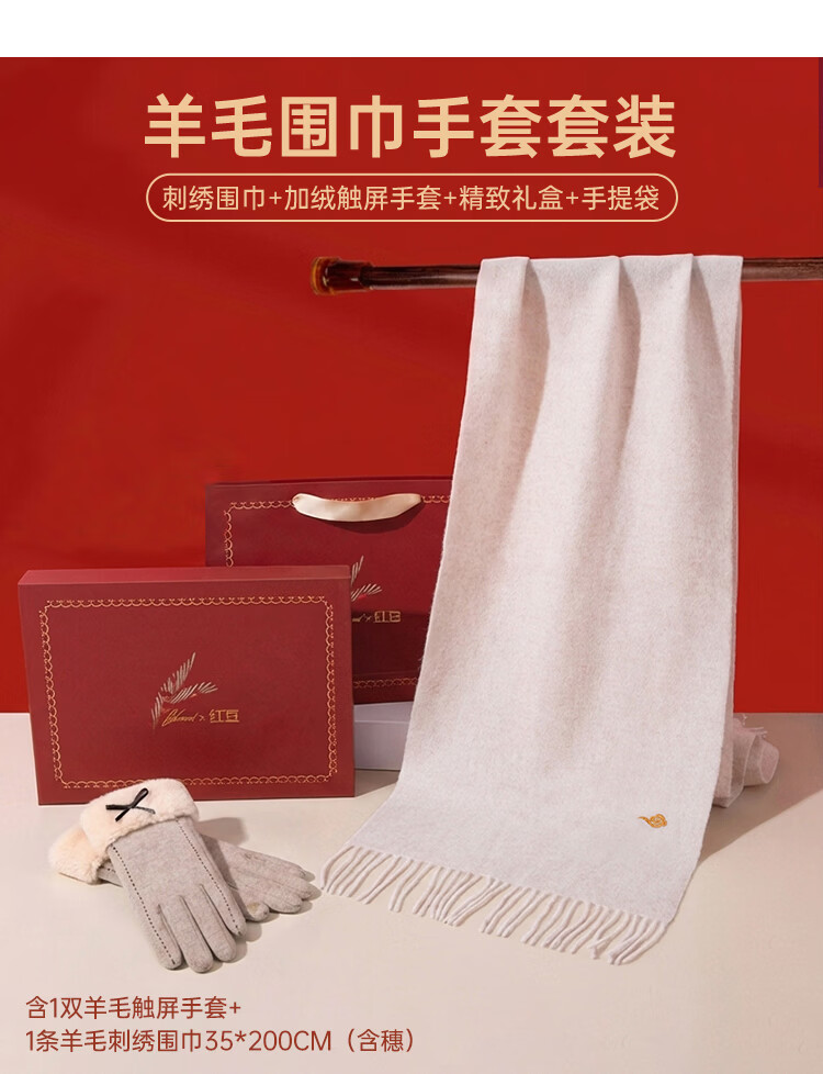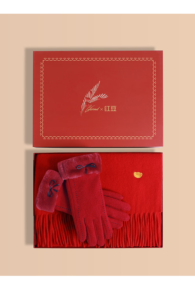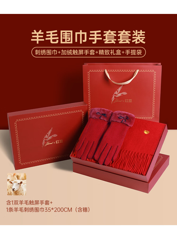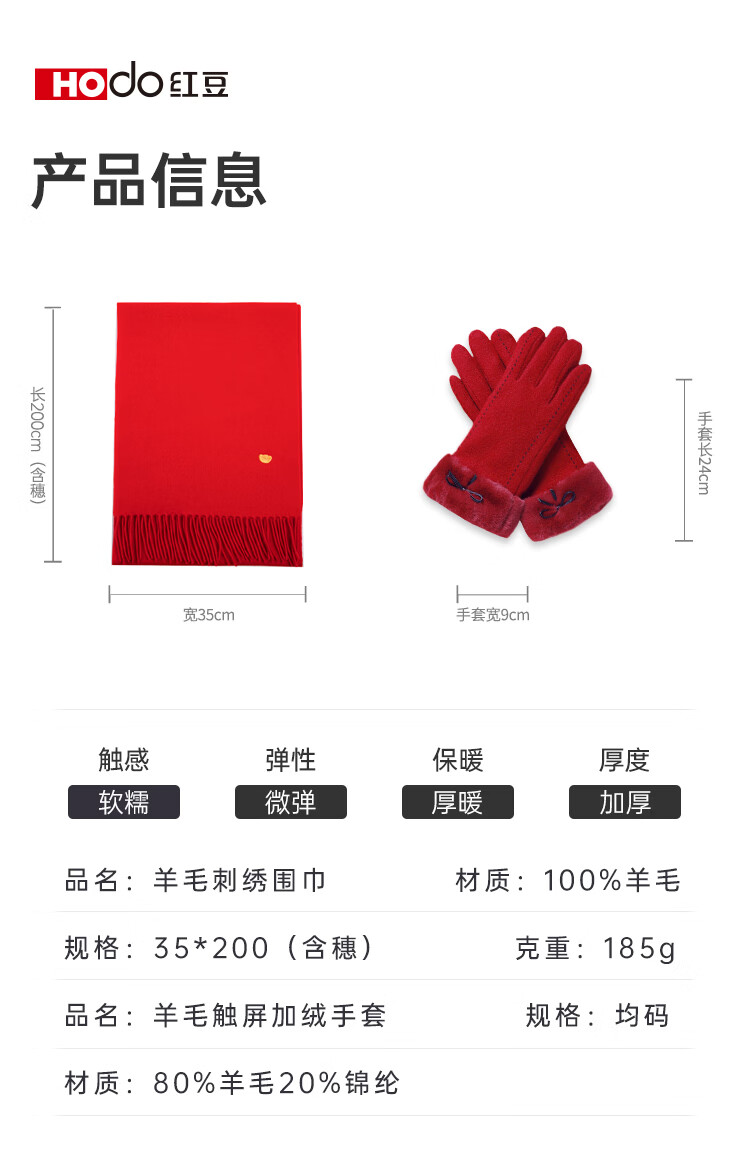 Hodo 100% wool scarf for women plus velvet gloves gift box warm suit New Year's gift for girlfriend's birthday