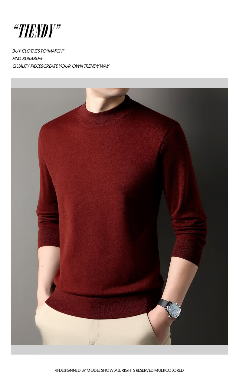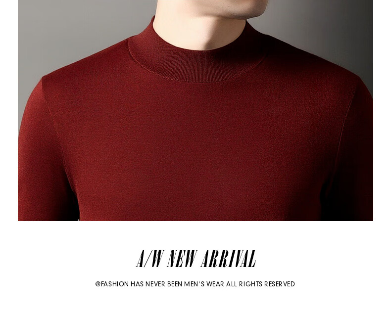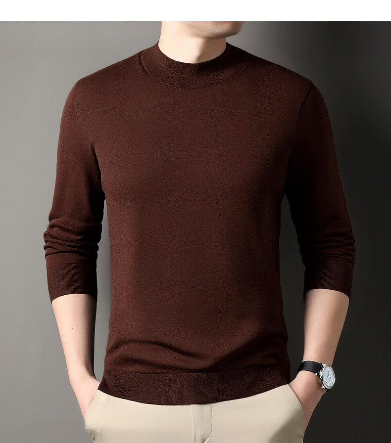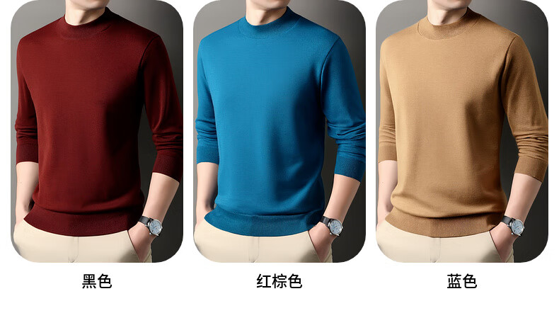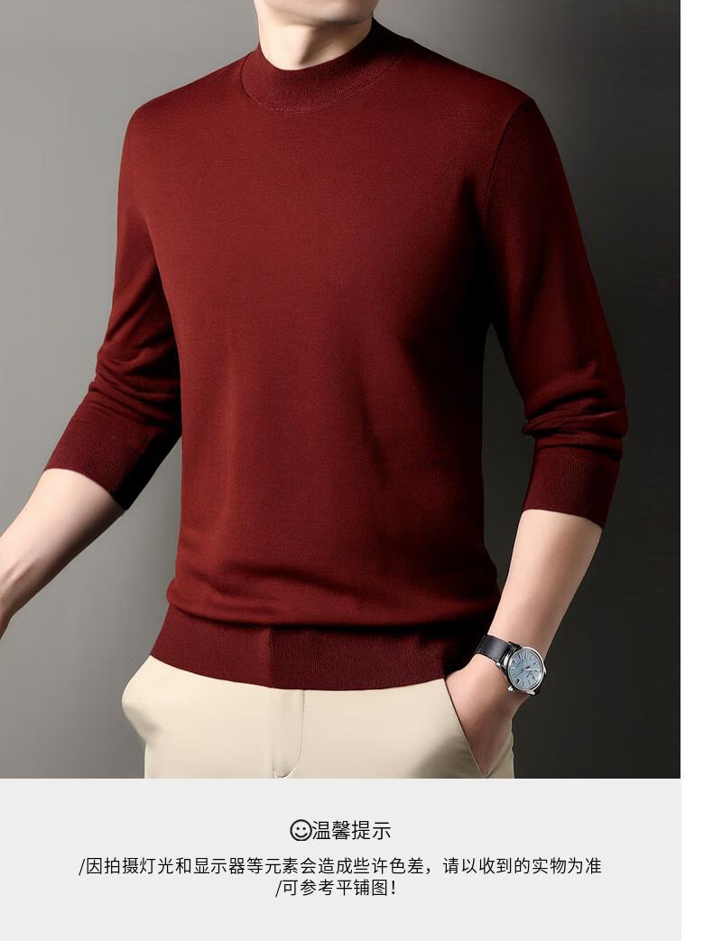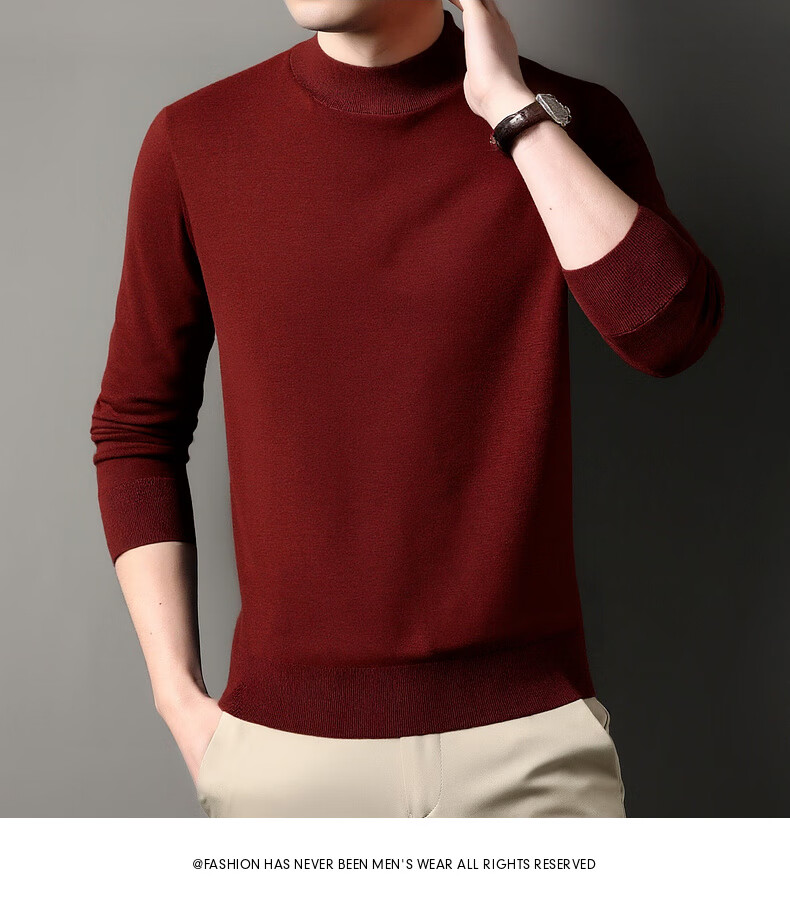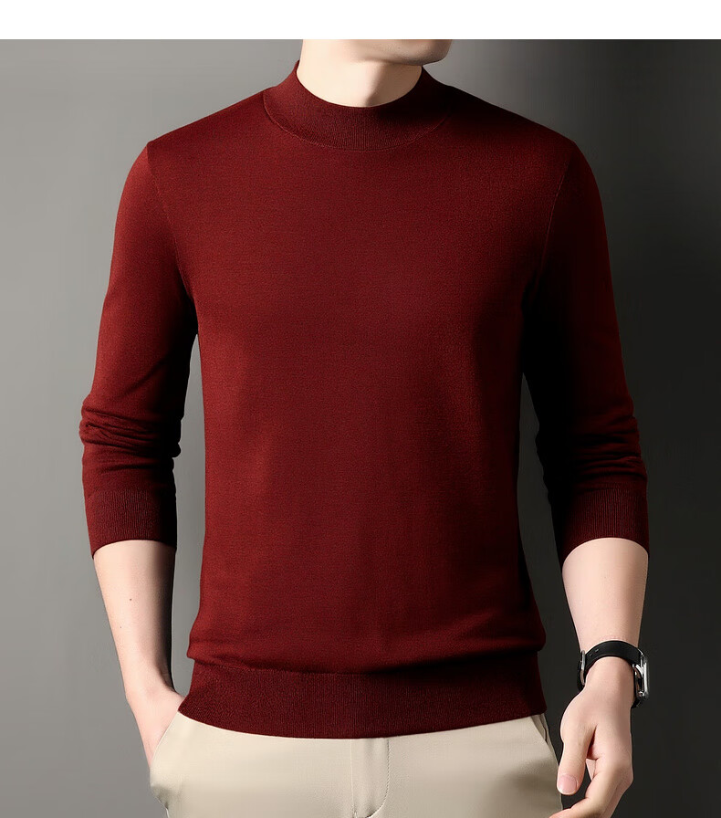 Hengyuanxiang 100% wool sweater men's thickened half turtleneck worsted machine washable sweater autumn and winter new warm red sweater
