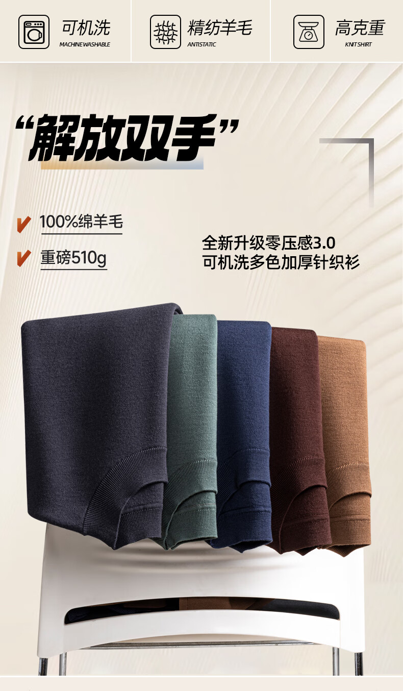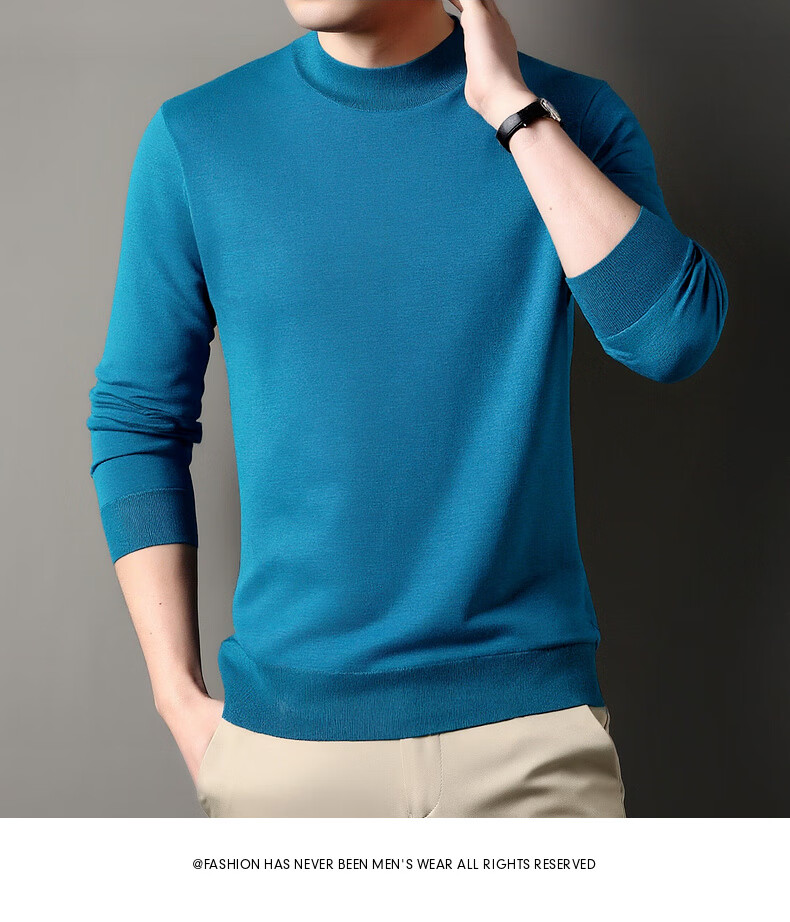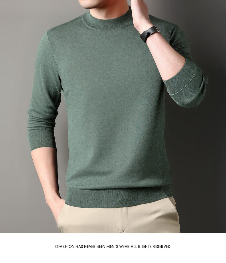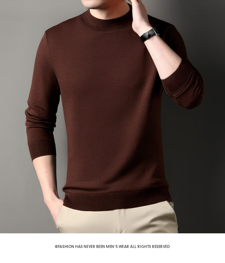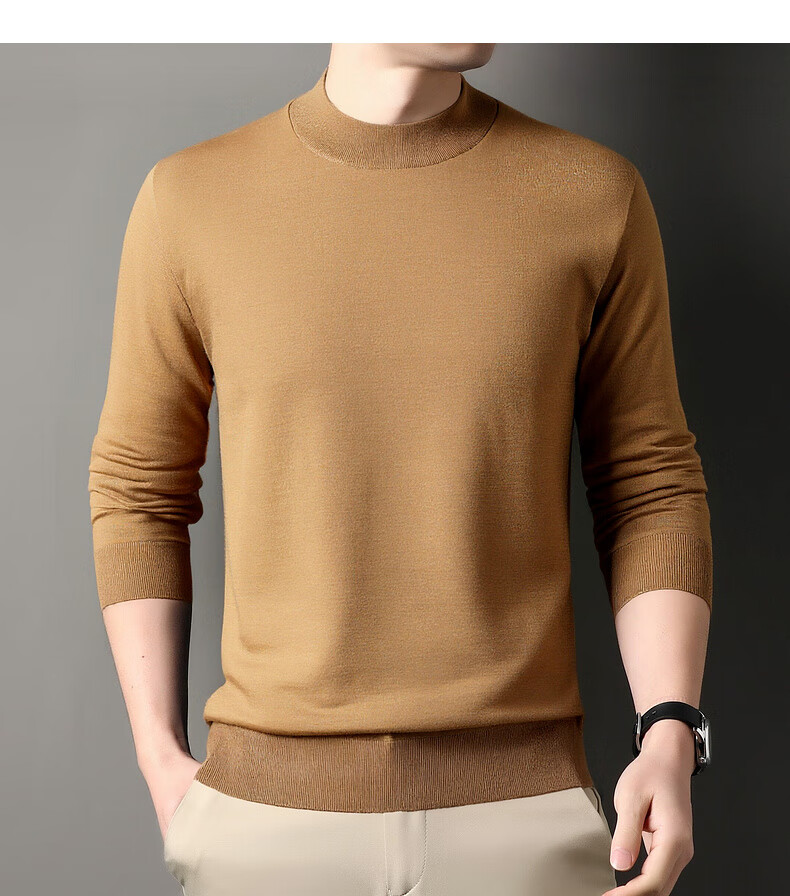 Hengyuanxiang 100% wool sweater men's thickened half turtleneck worsted machine washable sweater autumn and winter new warm red sweater