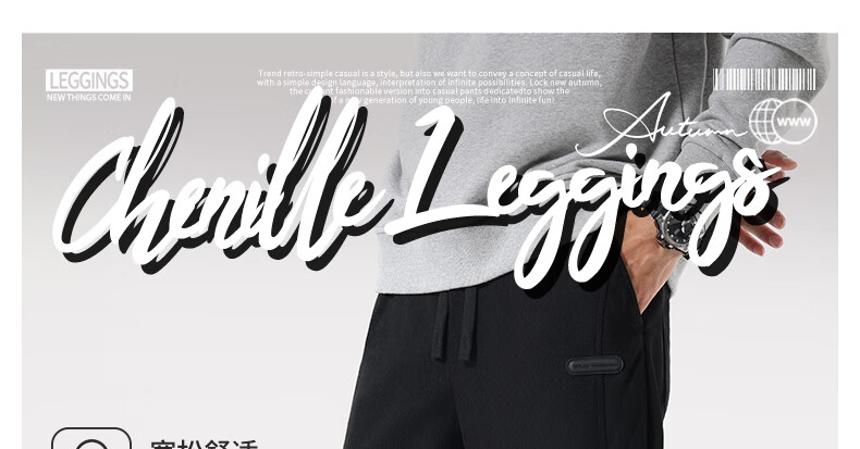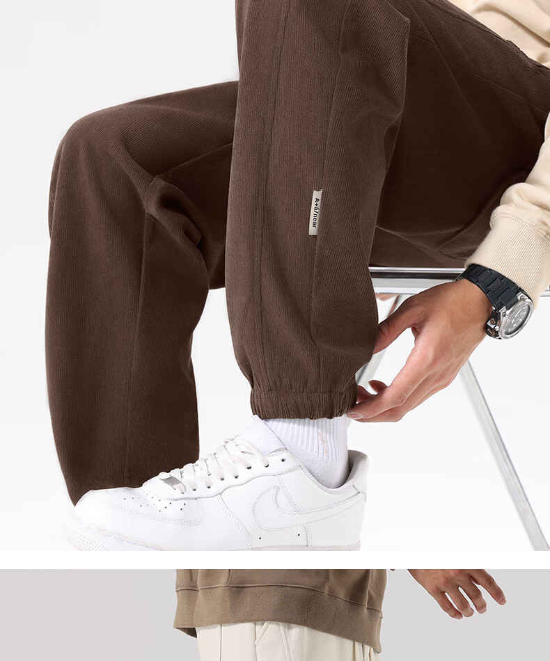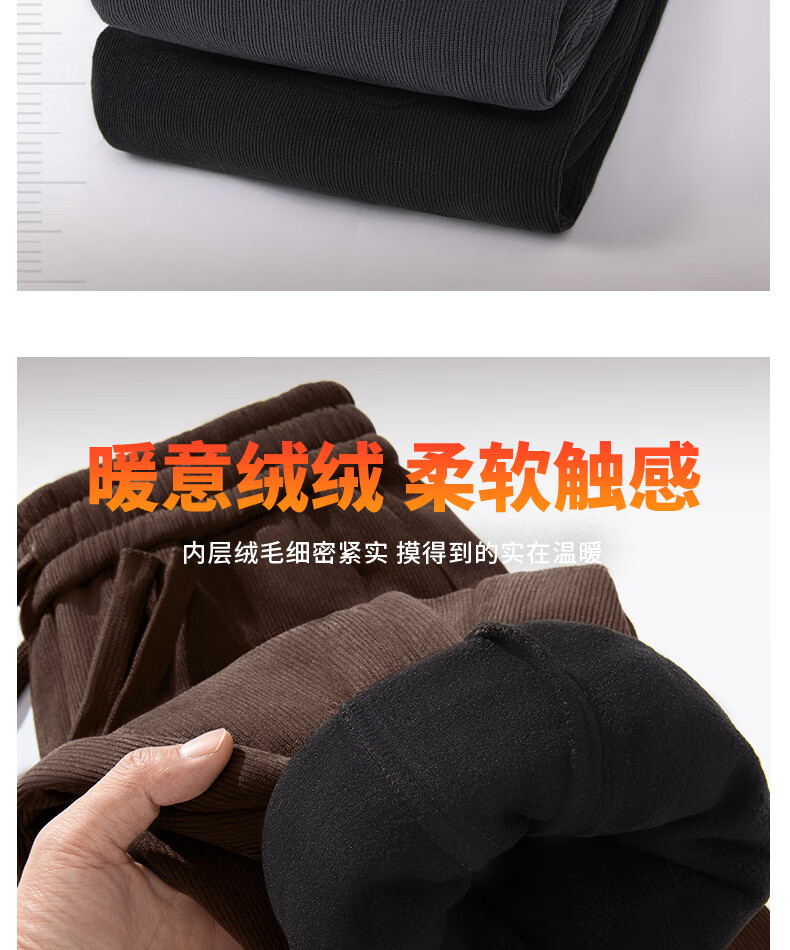 MINISO corduroy leggings men's winter velvet warm heavyweight chenille textured casual pants black M