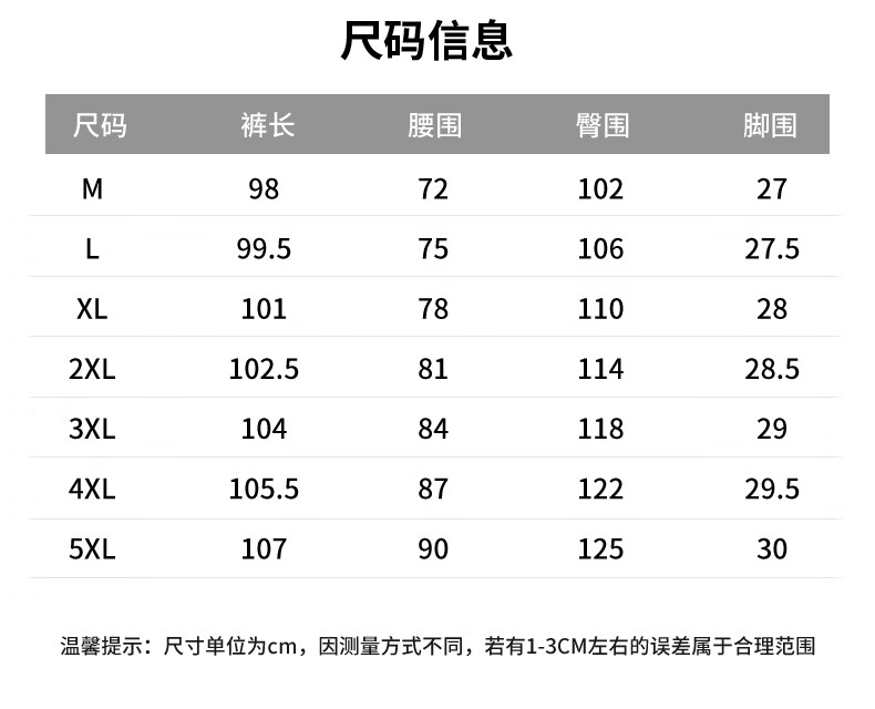 Outseam (cm) 99 cm 101.5 cm 104 cm 106.5 cm 109 cm