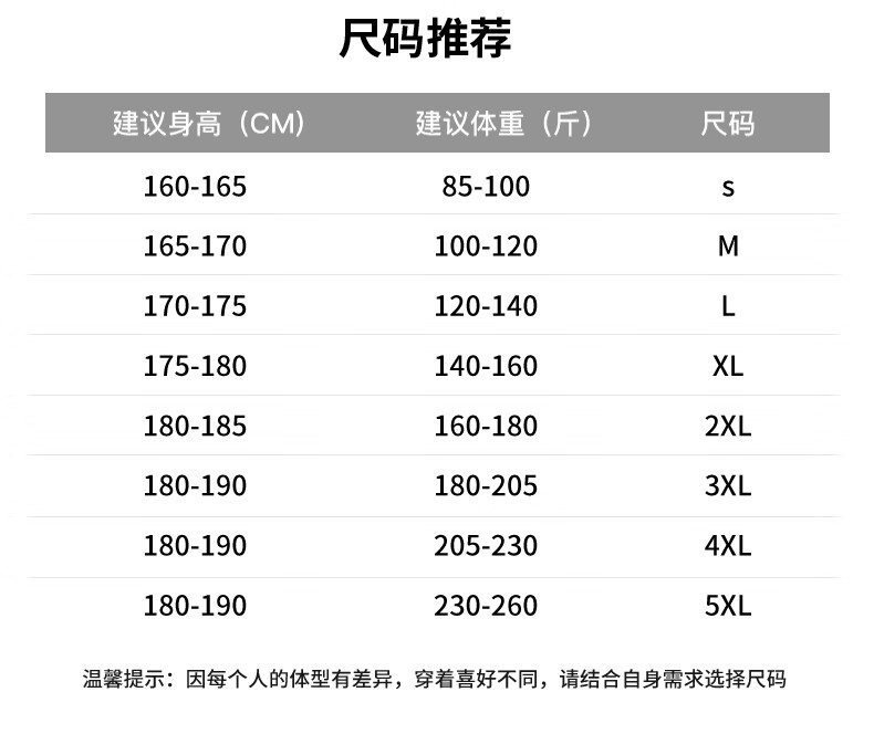 China (cm) 165 / 88-90 170 / 96-98 175 / 108-110 180 / 118-122 185 / 126-130
