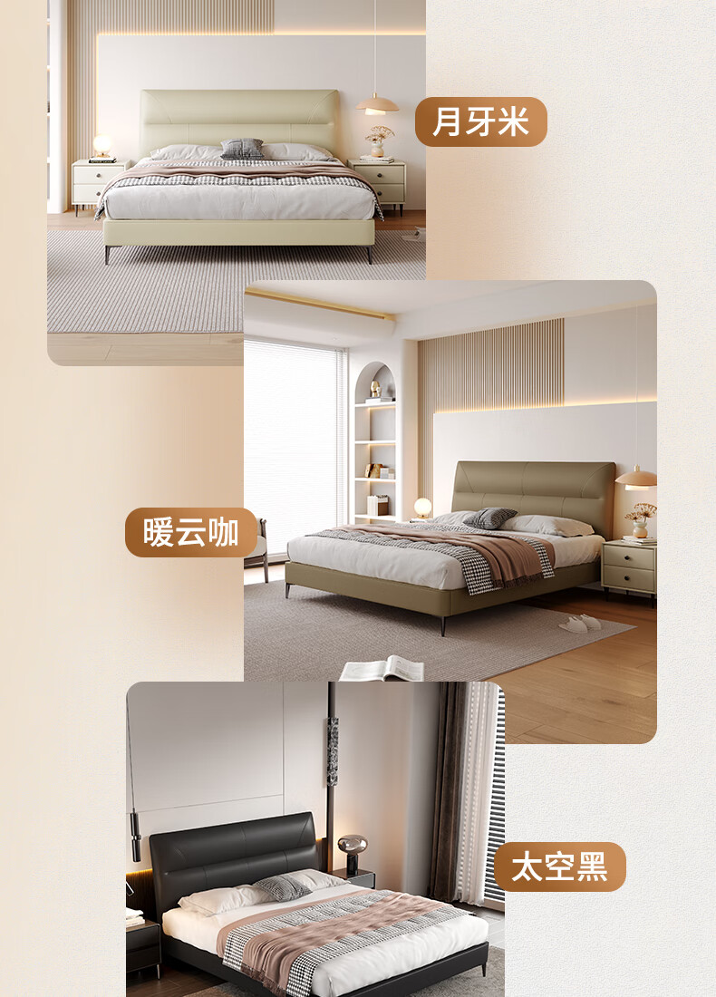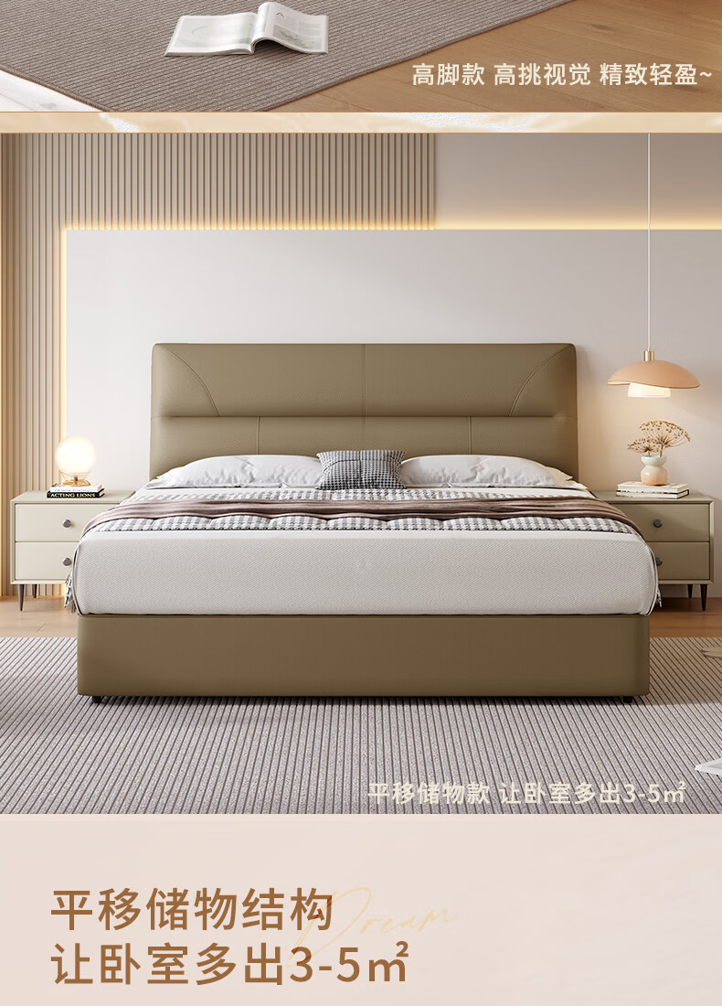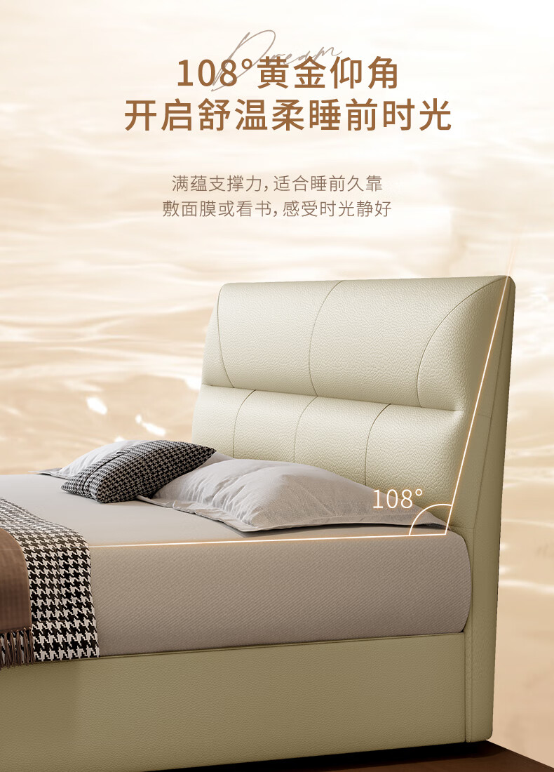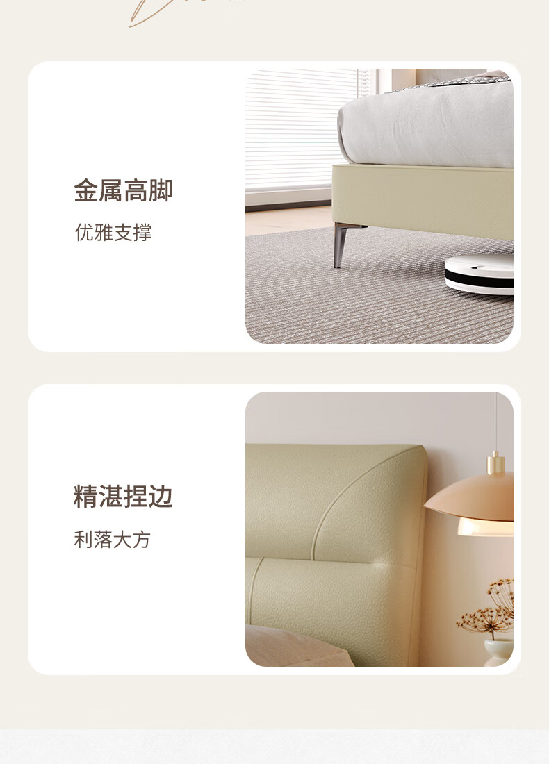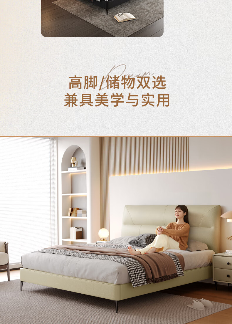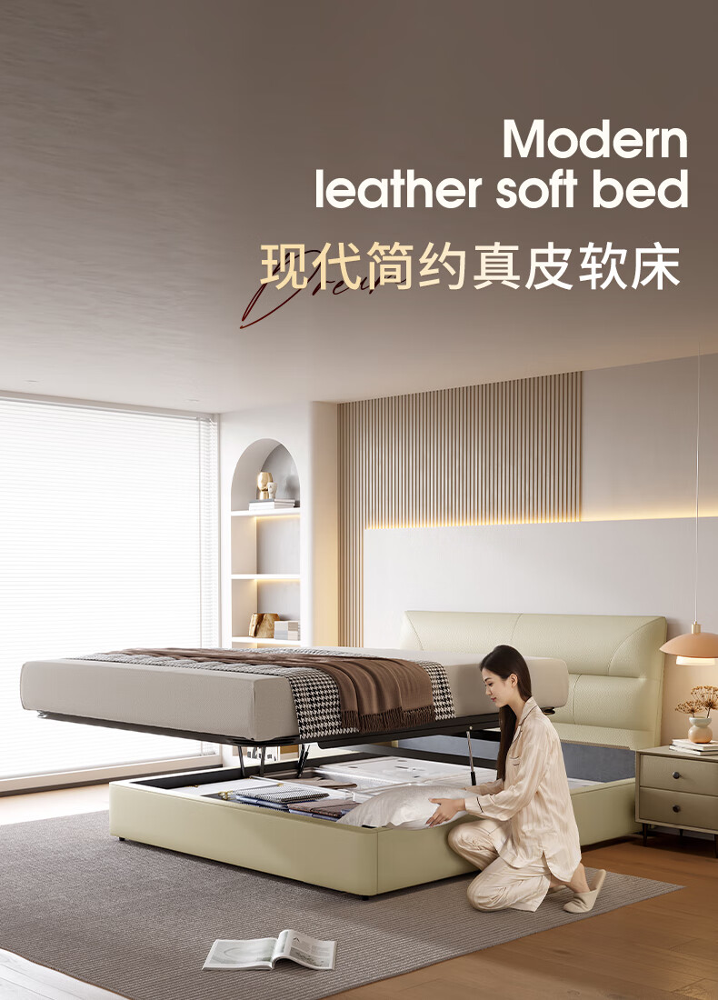 KUKA Modern Simple Leather Bed Bedroom 8227 Crescent Rice Storage + Single Bag Spring Latex Mat 1800*2000