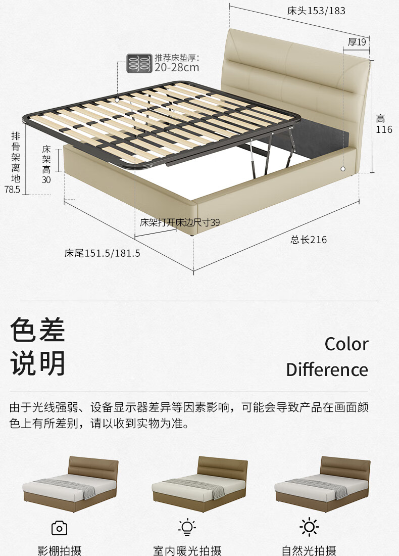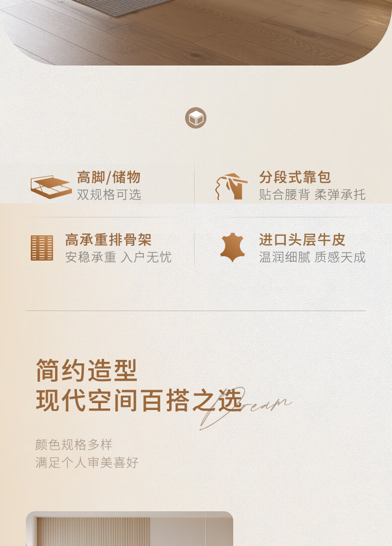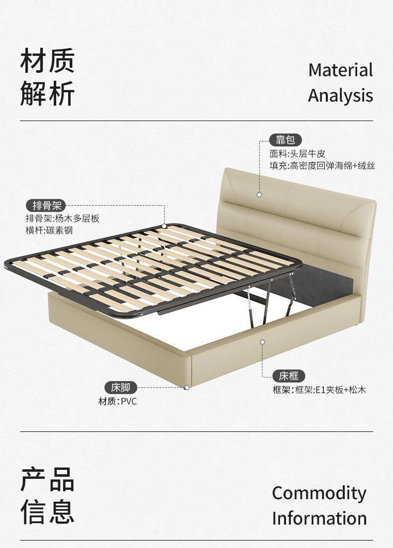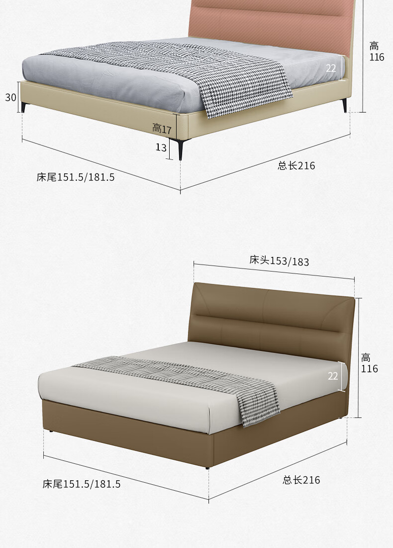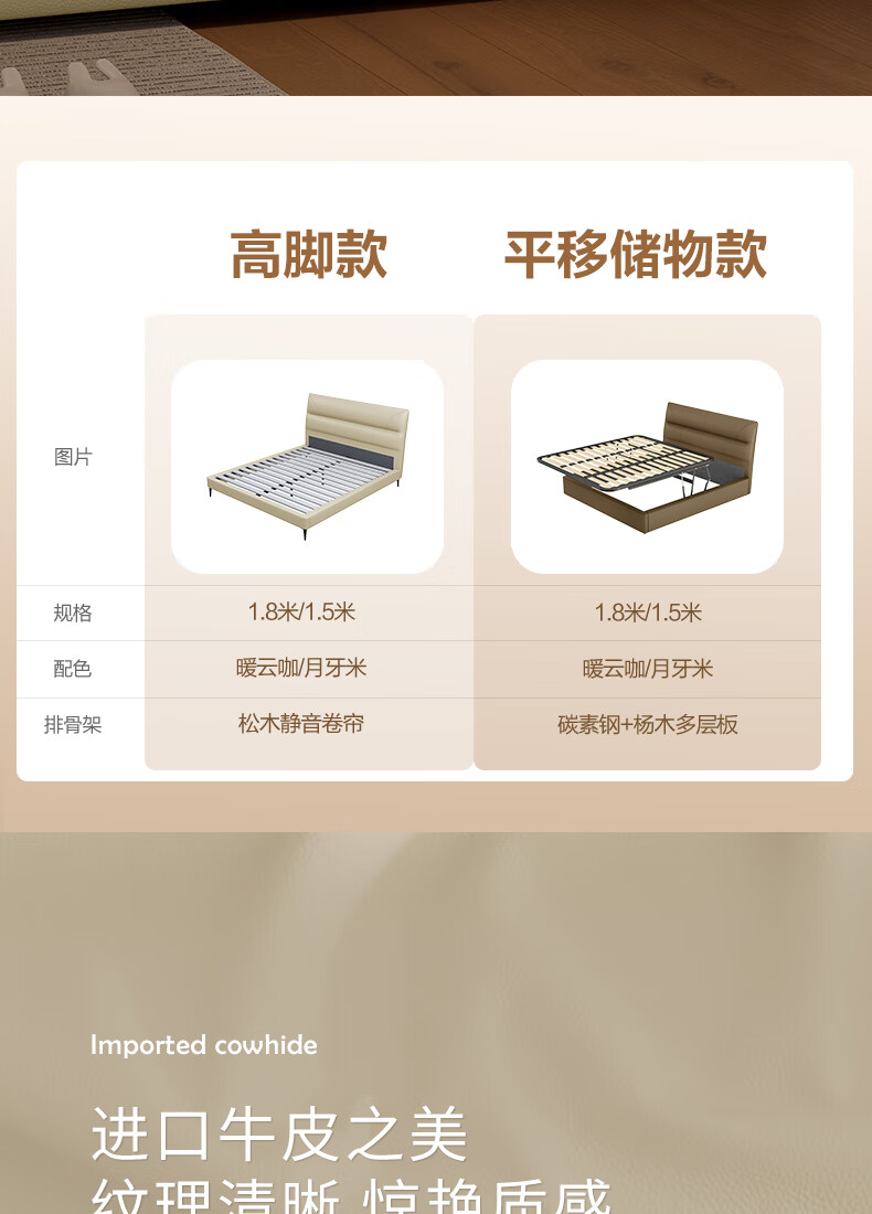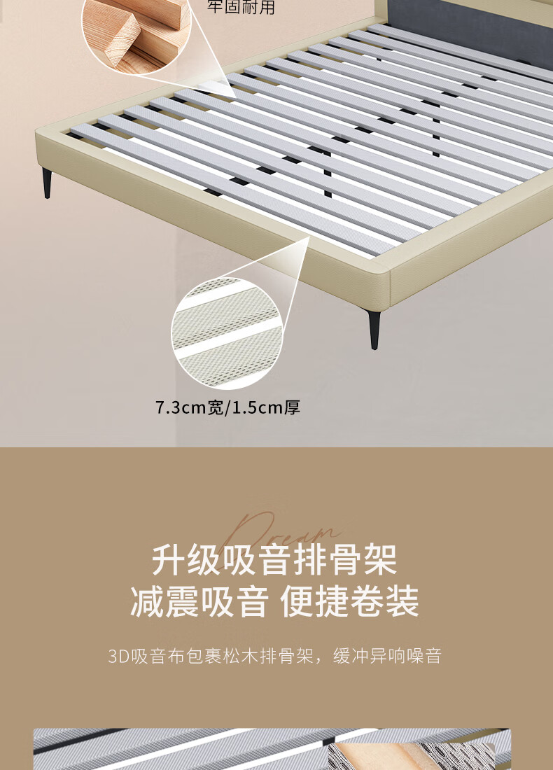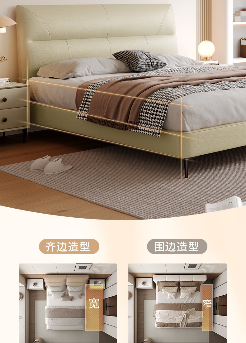 KUKA Modern Simple Leather Bed Bedroom 8227 Crescent Rice Storage + Single Bag Spring Latex Mat 1800*2000