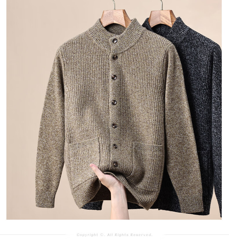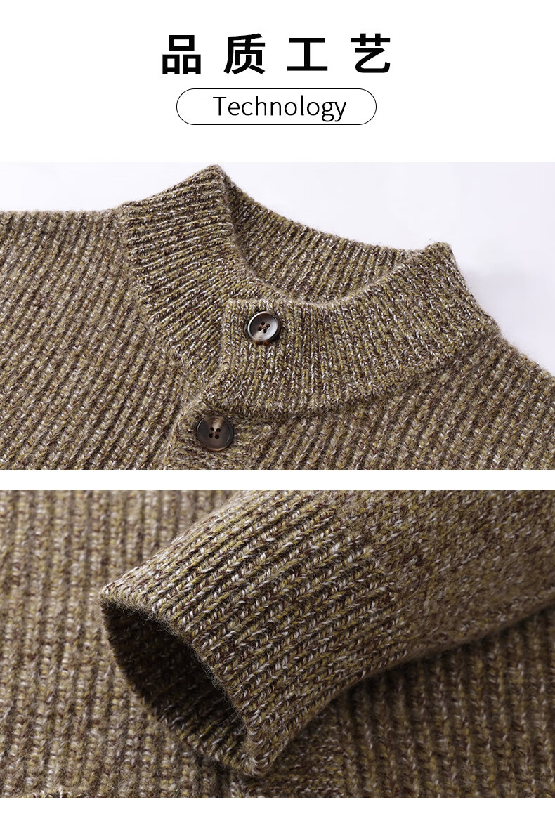 ROMON 100% pure wool sweater for men in autumn and winter new casual real pocket sweater for men with buttons knitted cardigan jacket for men