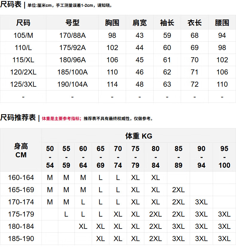 China (cm) 160-165/84-86 165-170 / 88-90 167-172 / 92-96 168-173 / 98-102 170-176 / 106-110