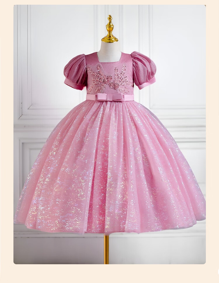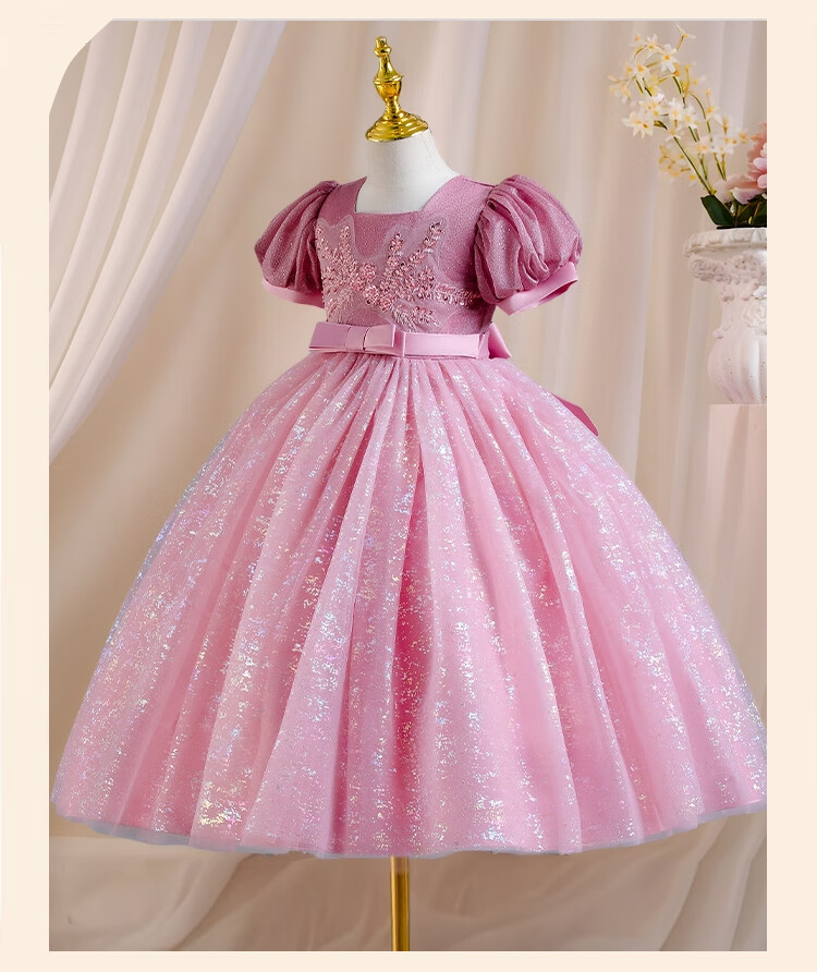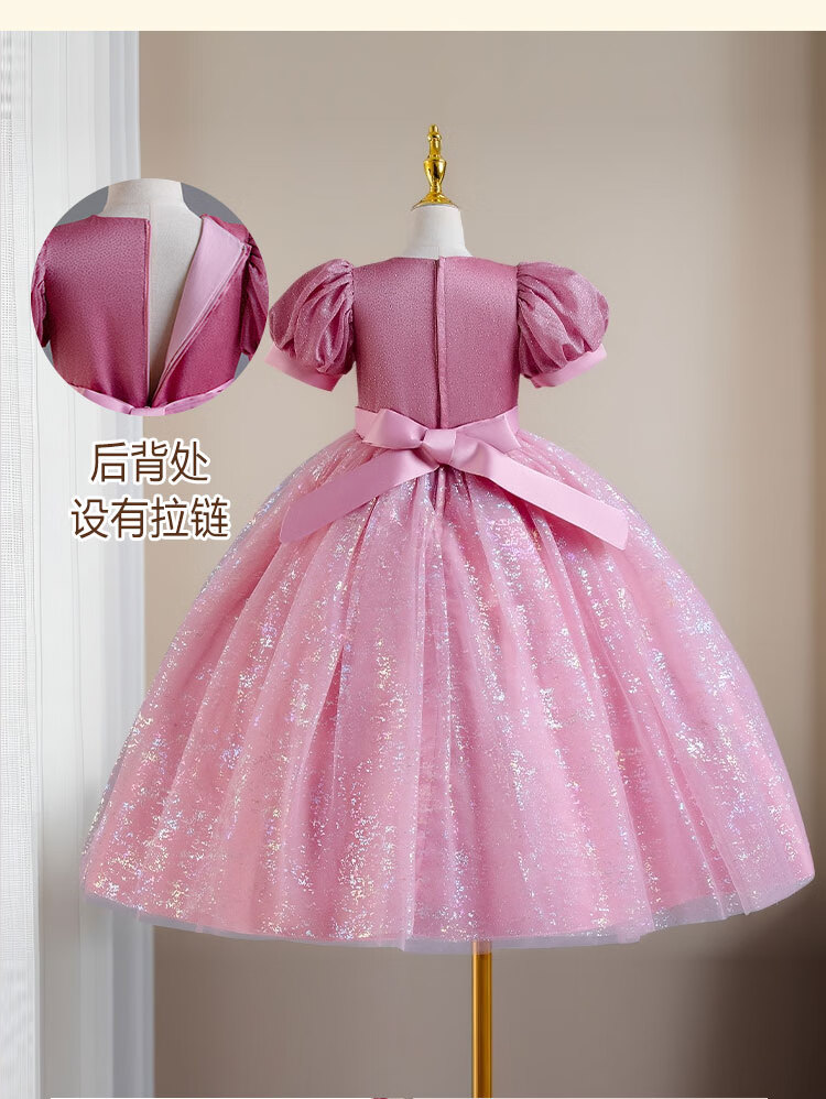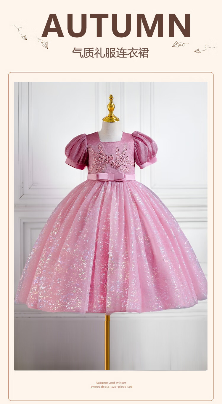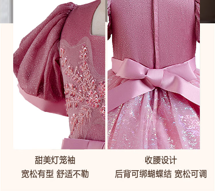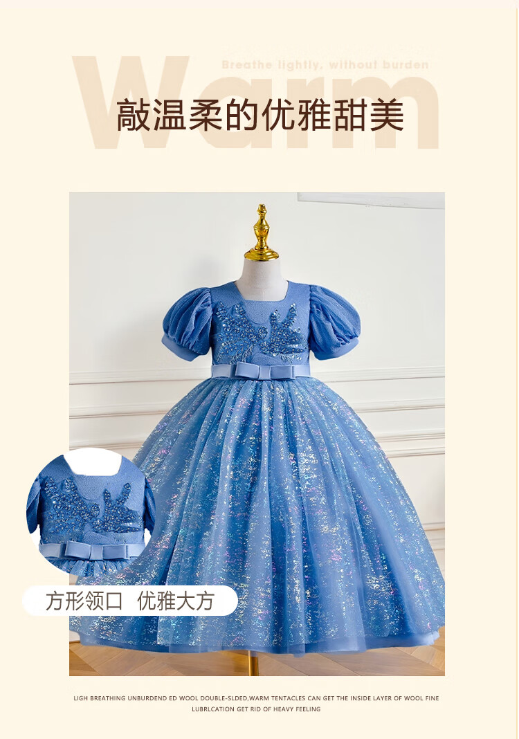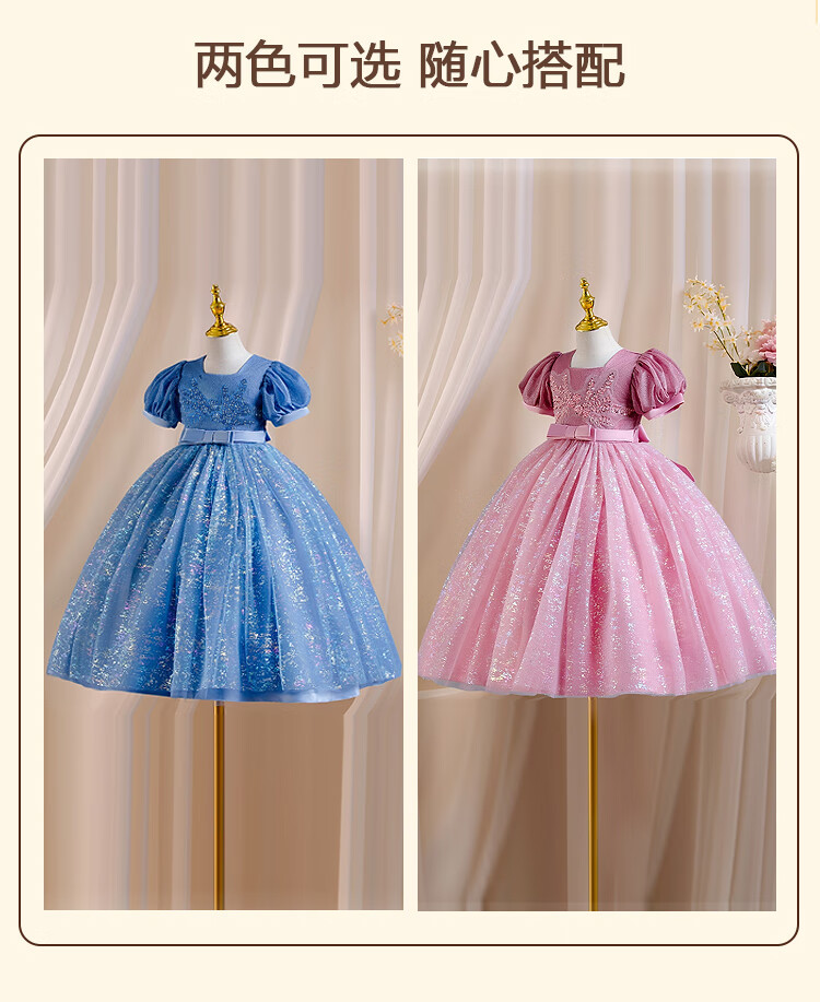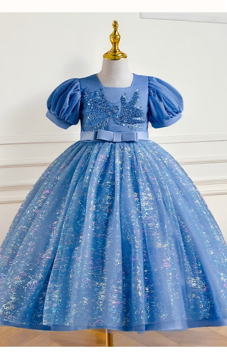 Luobo Beibei 2026 Girls Dress Blue Long Dress Children's Princess Dress Wedding Host New Year's Greetings Red 120