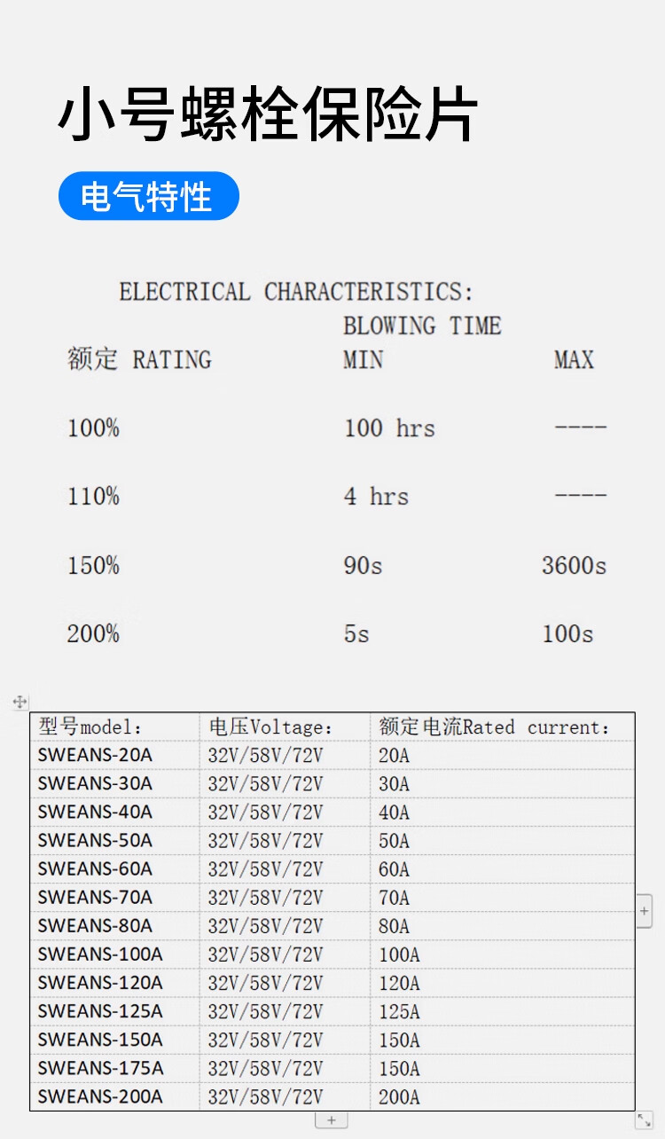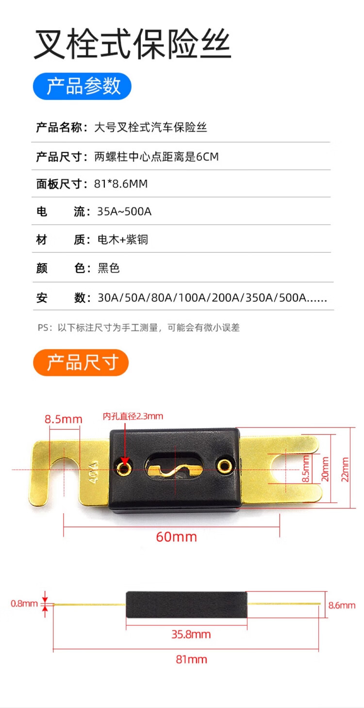 ZAVE fork bolt car fuse piece large fork bolt fuse piece 100A