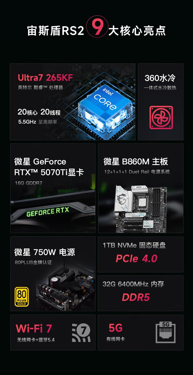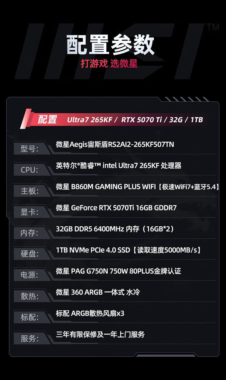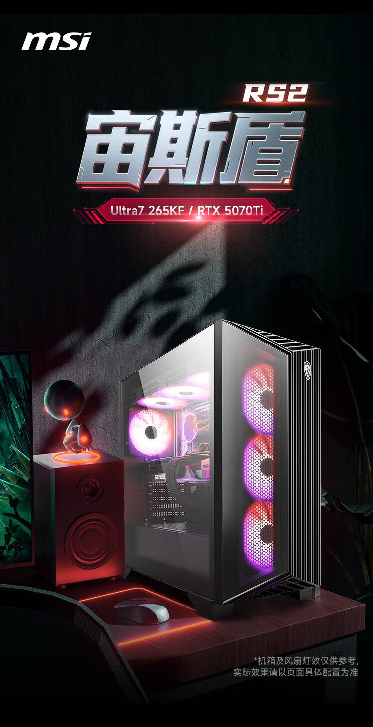 MSI Family Bucket Aegis RS2 Ultra7 265KF/RTX5070Ti/32G D5/1T water-cooled e-sports gaming desktop computer host complete machine national subsidy