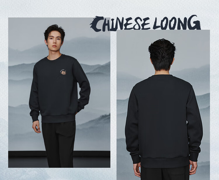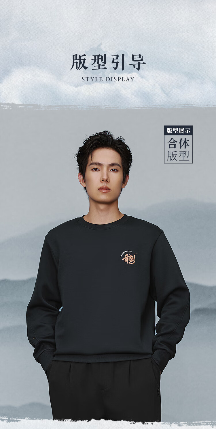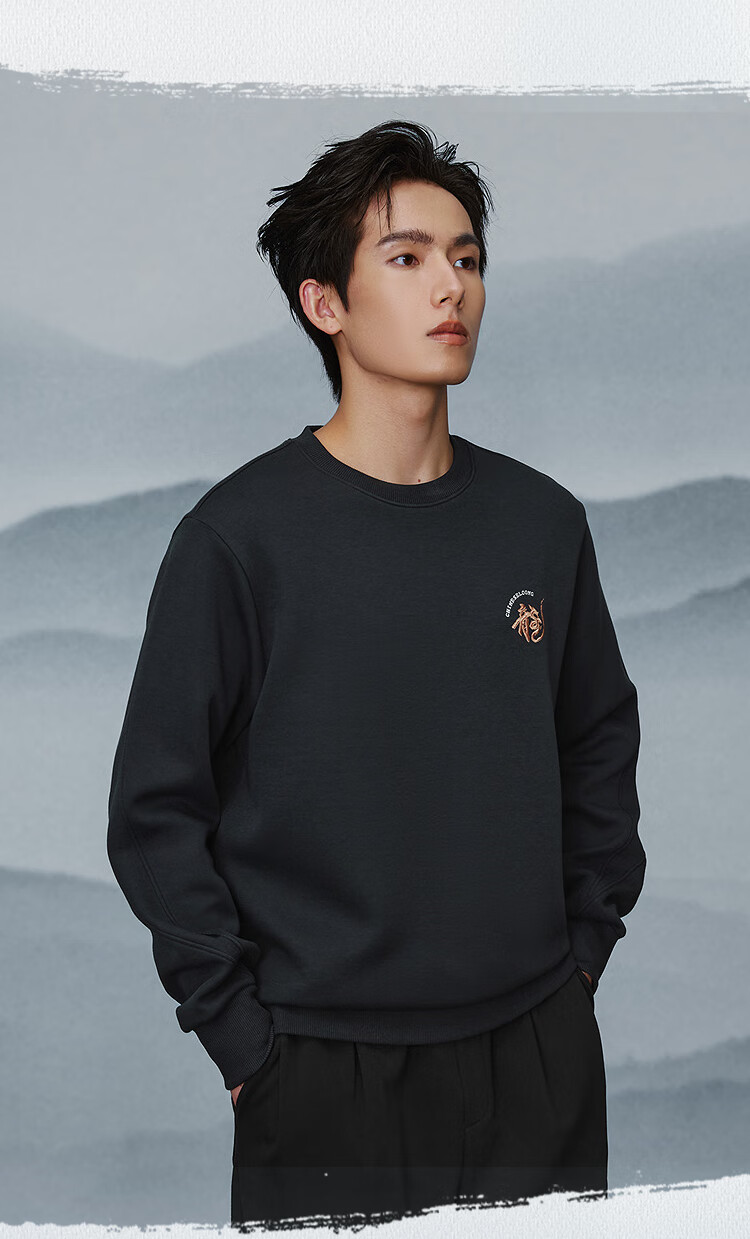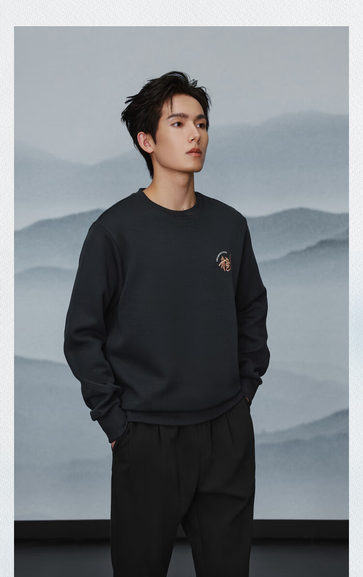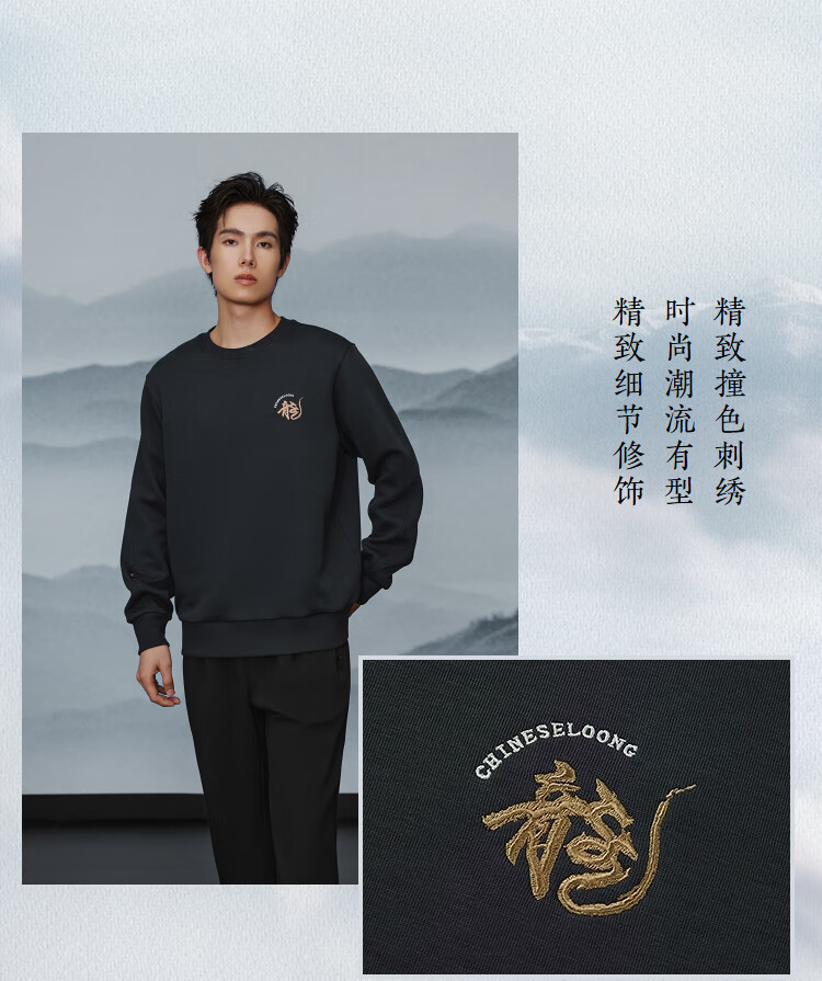 HLA Hai Lan House Sweater Men's New Chinese Dragon Round Neck Contrast Color Embroidery Warm Long Sleeve Men's Autumn