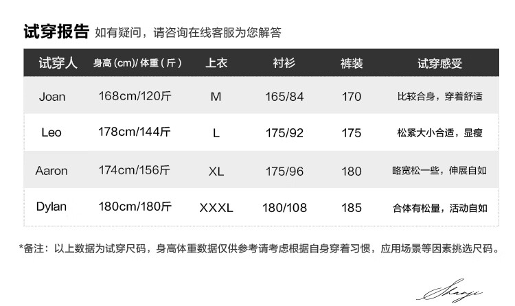 China (cm) 165 / 88-90 170 / 96-98 175 / 108-110 180 / 118-122 185 / 126-130