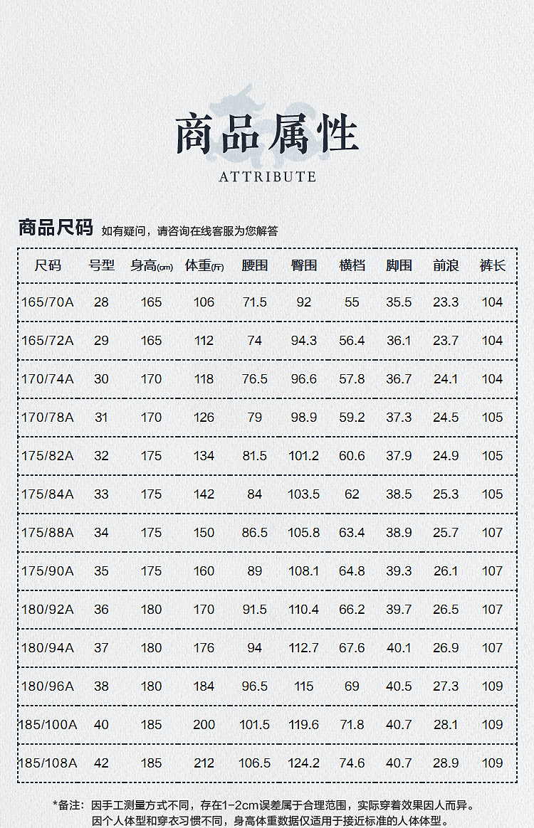 China (cm) 160-165/84-86 165-170 / 88-90 167-172 / 92-96 168-173 / 98-102 170-176 / 106-110