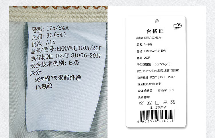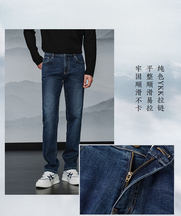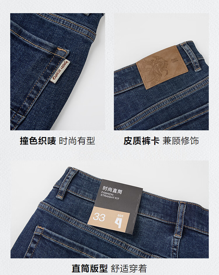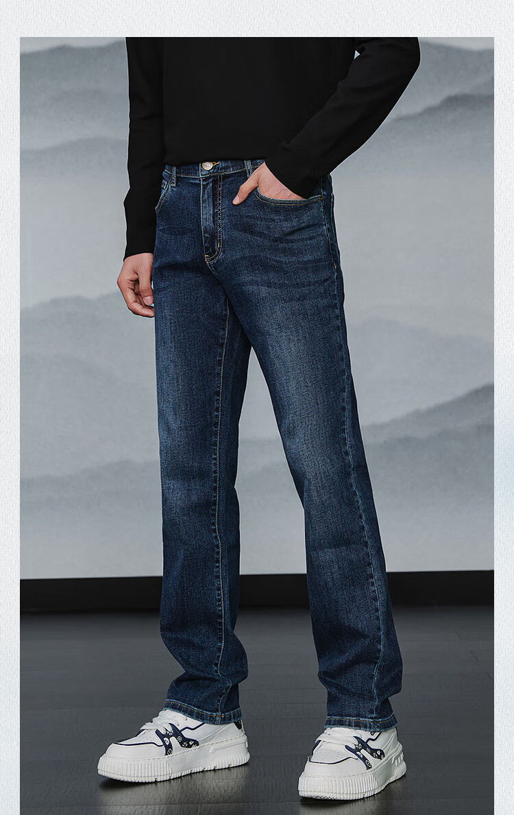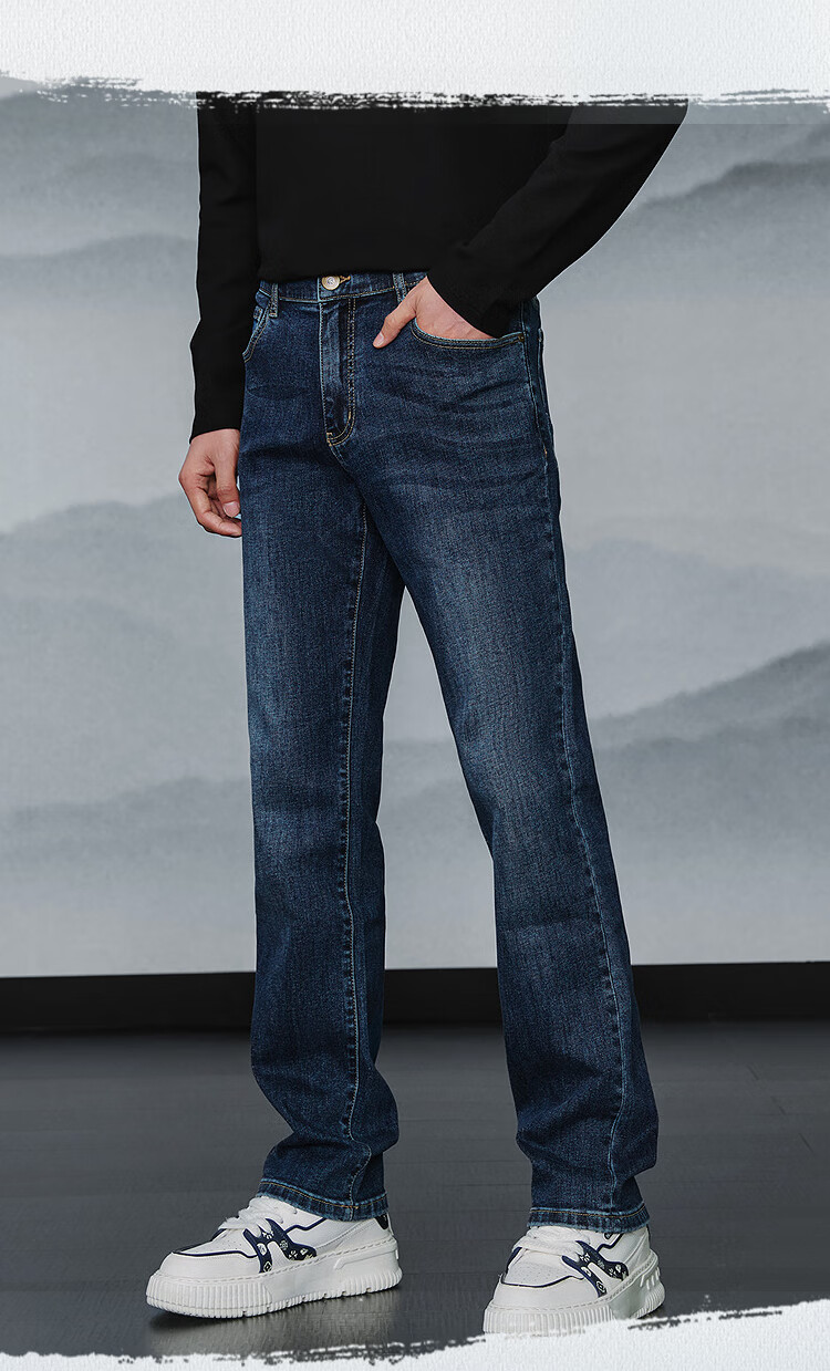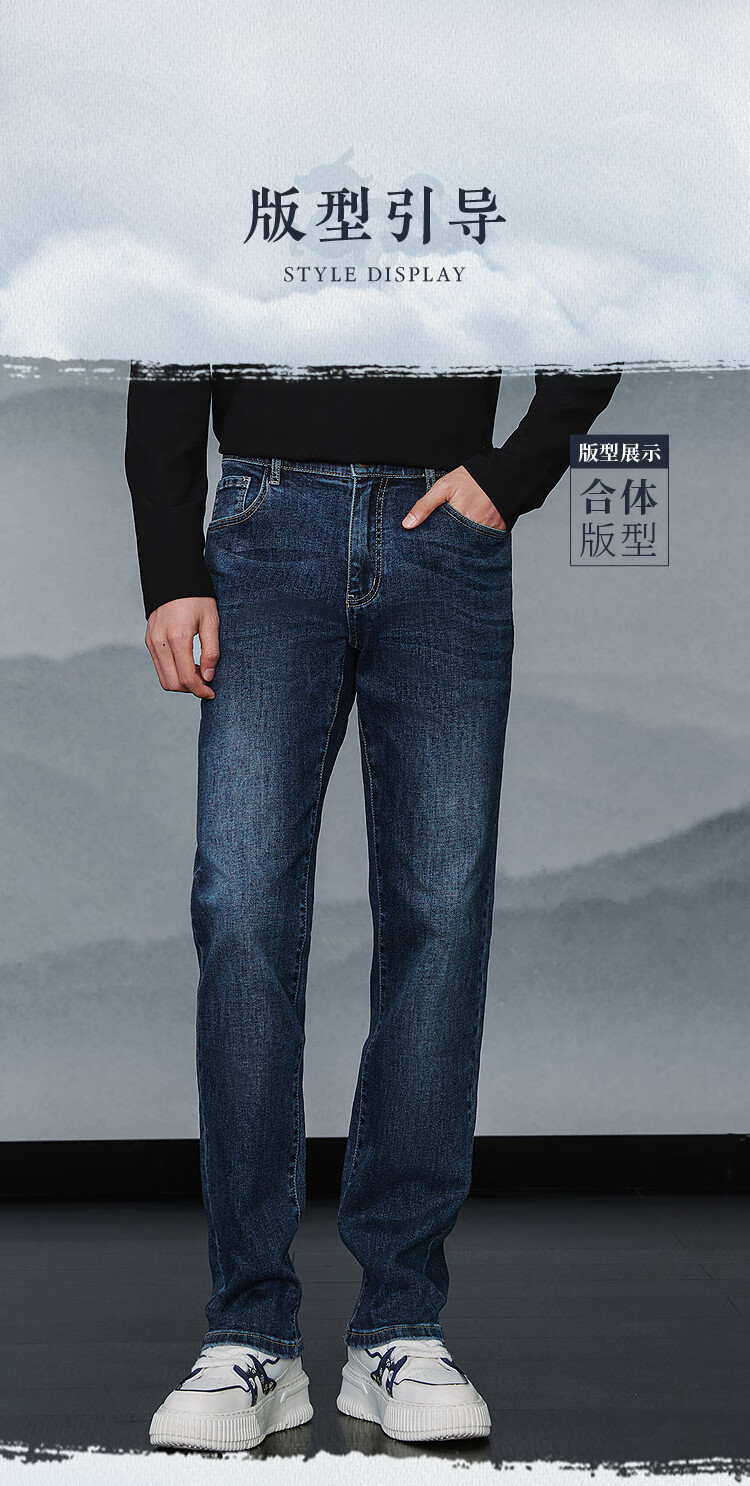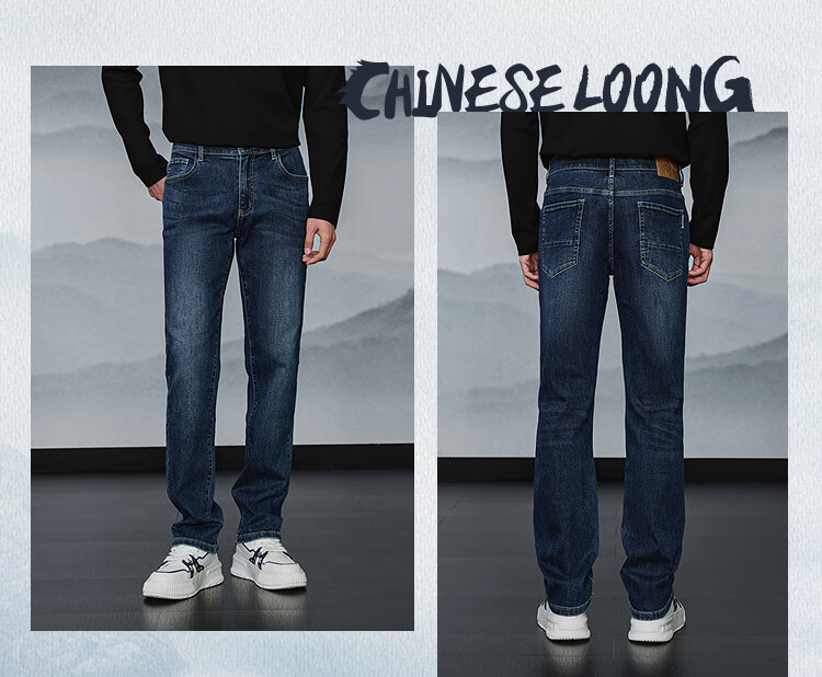 HLA Hai Lan House Jeans Hombres 25 Dragón Chino Cinco Bolsas Pantalones Rectos Lavados Otoño de los Hombres