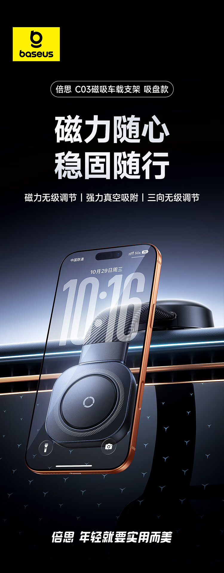 BASEUS car mobile phone holder magnetic car special dashboard suction cup magnetic adjustment universal for all models 2025 new model