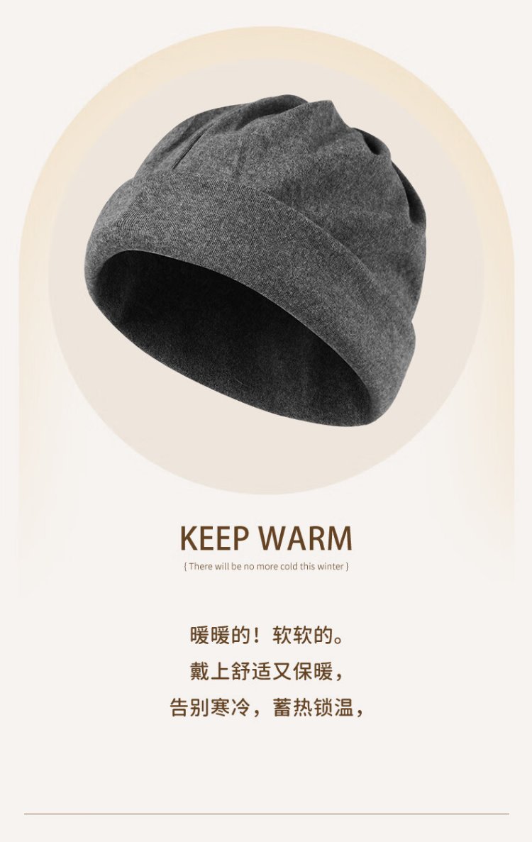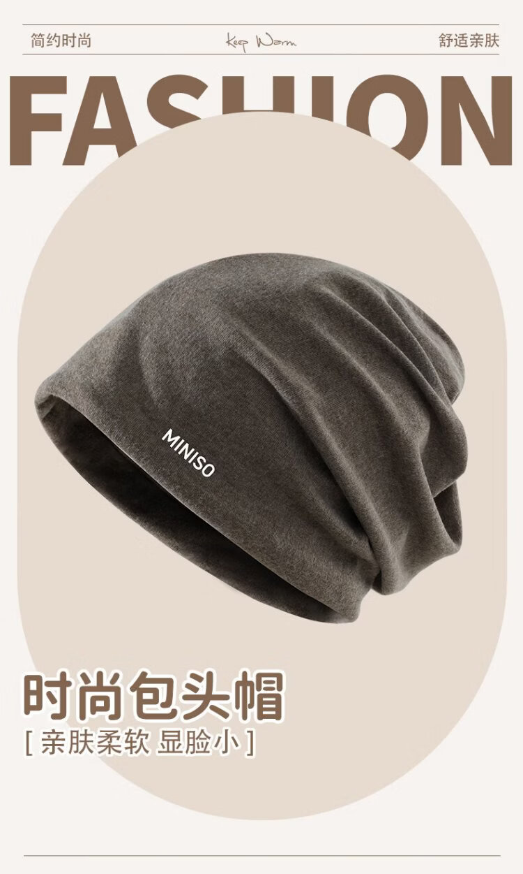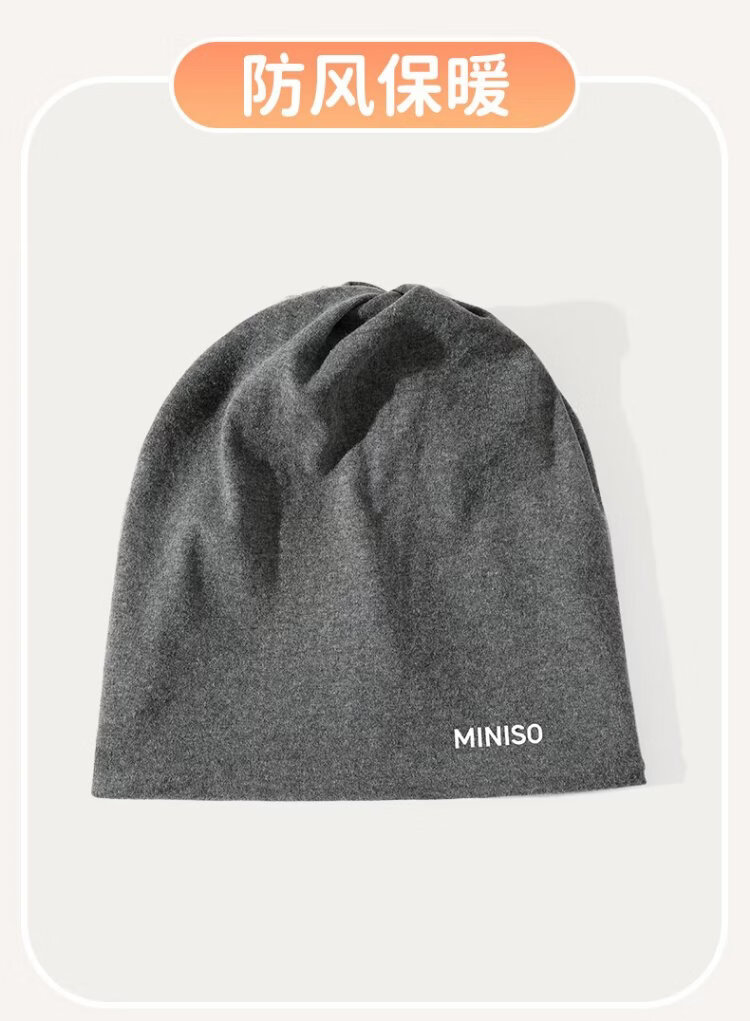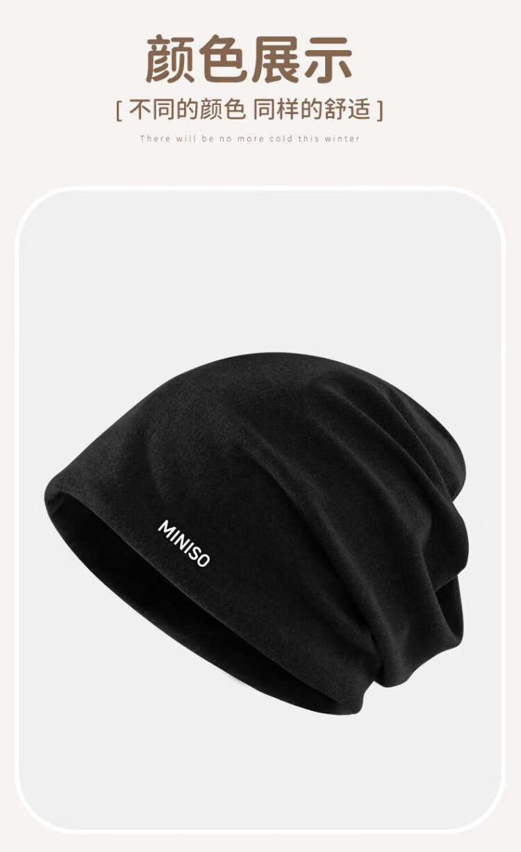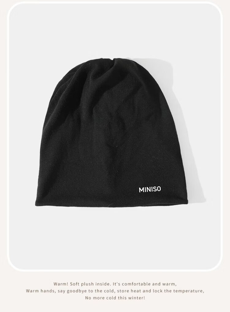 MINISO Hat Women's Autumn and Winter Warm Baotou Hat Windproof Nightcap Men's Large Head Circumference Light Thin Pile Hat Warm Neck Cover Black