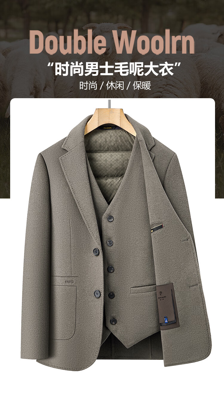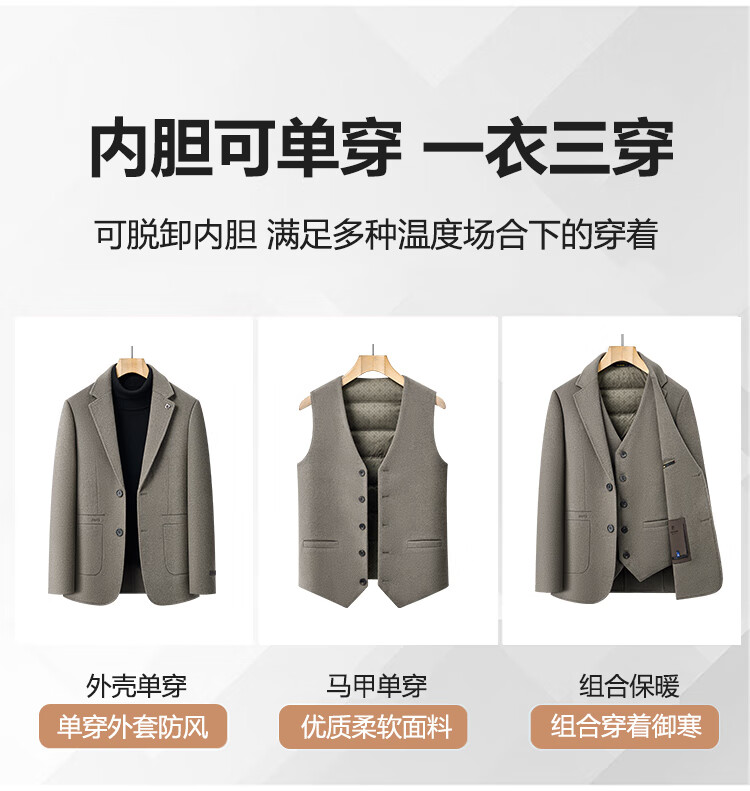 Hengyuanxiang 2025 new winter men's wool woolen coat middle-aged suit collar coat removable vest