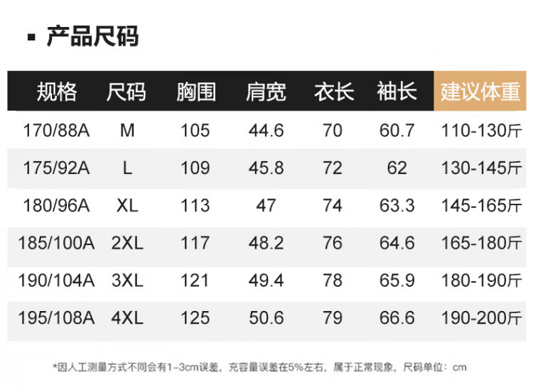 China (cm) 165 / 88-90 170 / 96-98 175 / 108-110 180 / 118-122 185 / 126-130