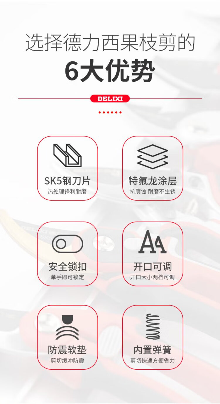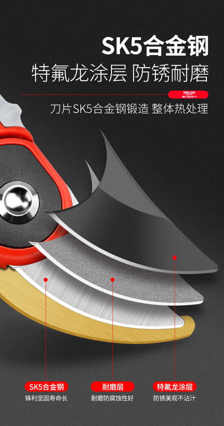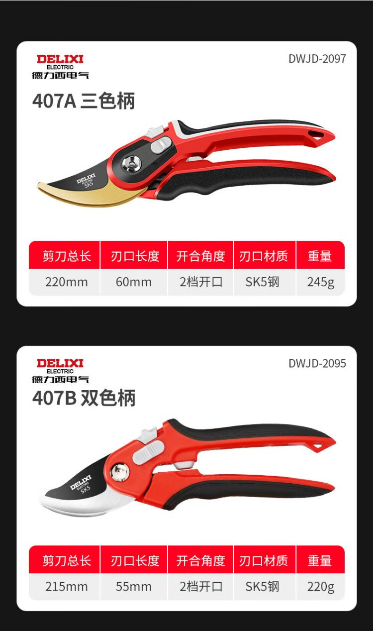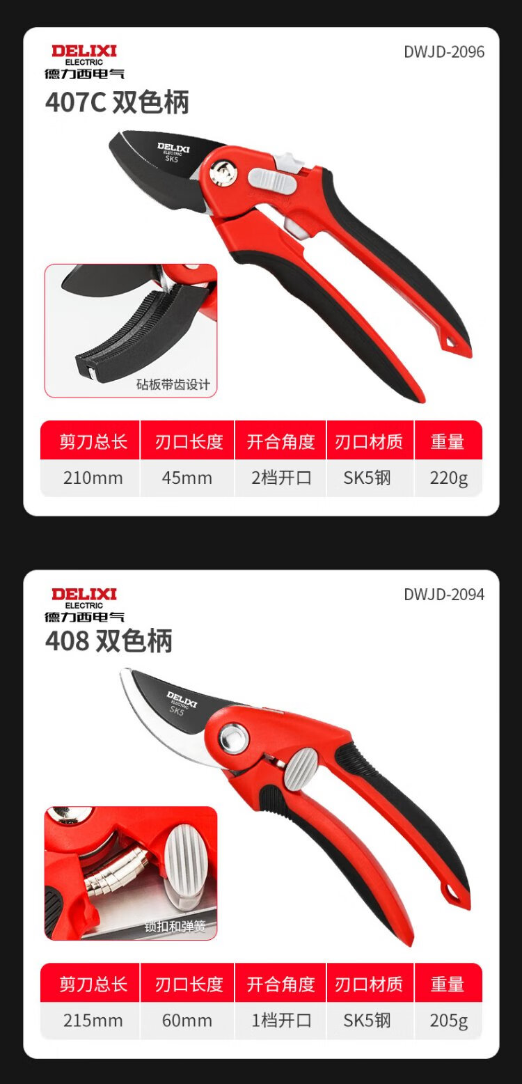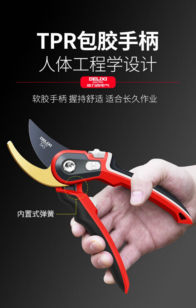 Delixi fruit tree branch pruning scissors branch gardening flower garden flower shears powerful labor-saving scissors professional branch shears two-speed adjustable three-color handle