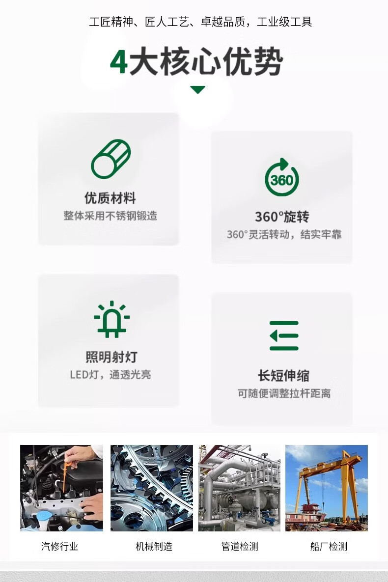 Wolfan car universal telescopic inspection mirror car bottom telescopic inspection mirror car repair detection lighted mirror endoscope