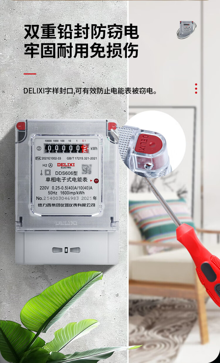 Delixi Electric Meter Home Commercial Rental Single Phase Electric Meter DDS606 Fire Meter 15(60)A