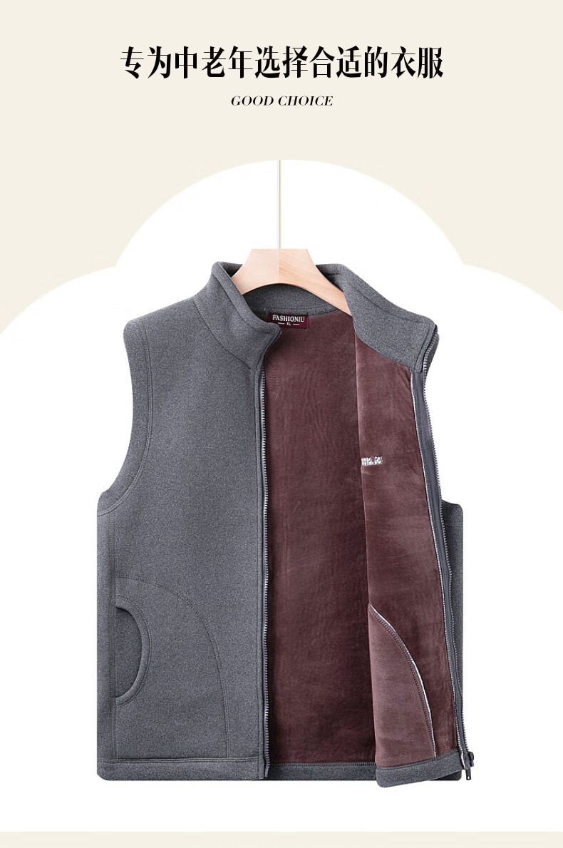 Xiaofu dad's winter warm vest zipper middle-aged and elderly men's base layer cold-resistant cardigan vest vest top waistcoat
