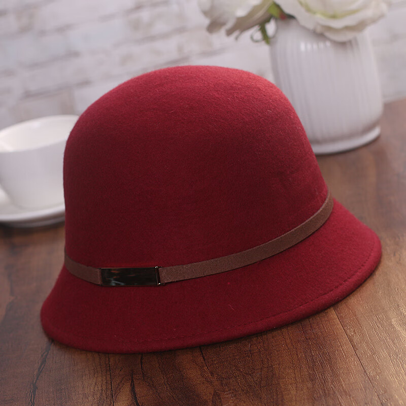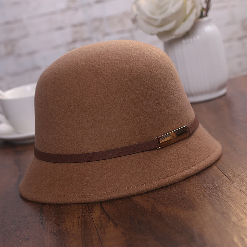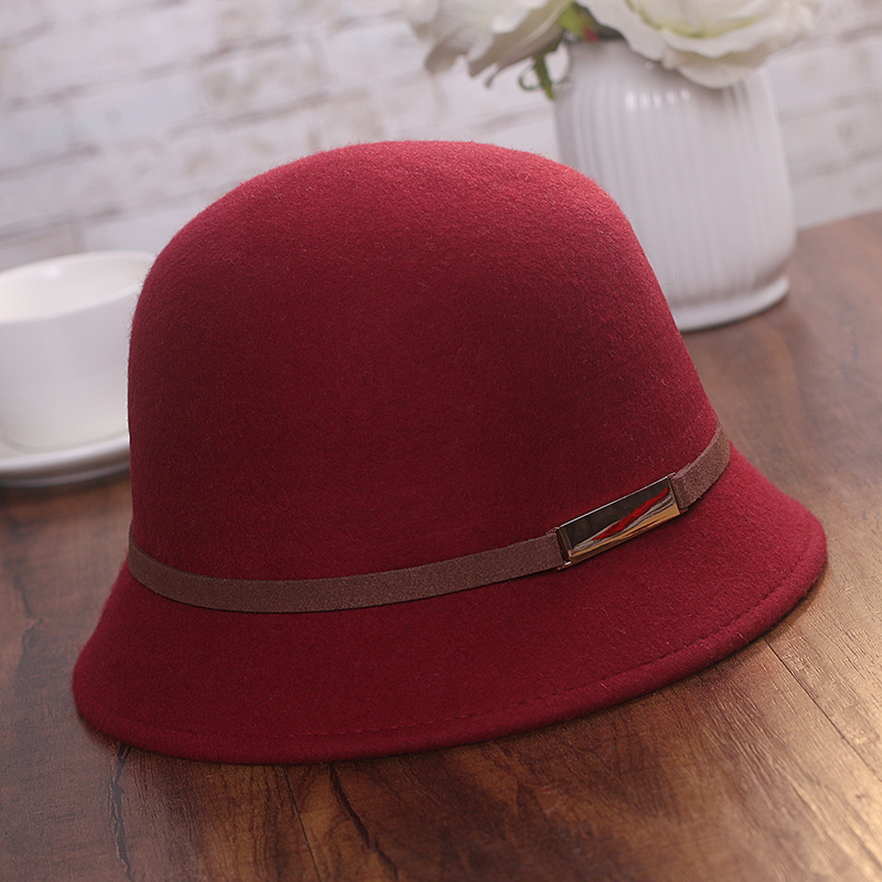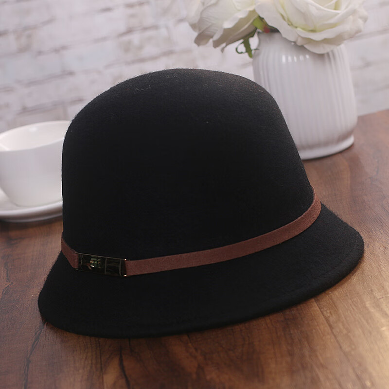 JIASHENGXI hat women's autumn and winter Korean style woolen hat casual versatile fisherman hat British retro belt bowler hat black M (56-58cm)