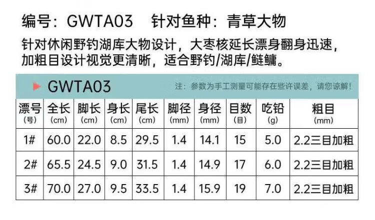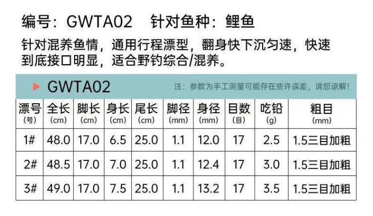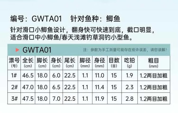 Guangwei Nano Float Sensitivity High Definition Wild Fishing Float Thick Tail Float Fluorescent GWTA02 Carp No. 1