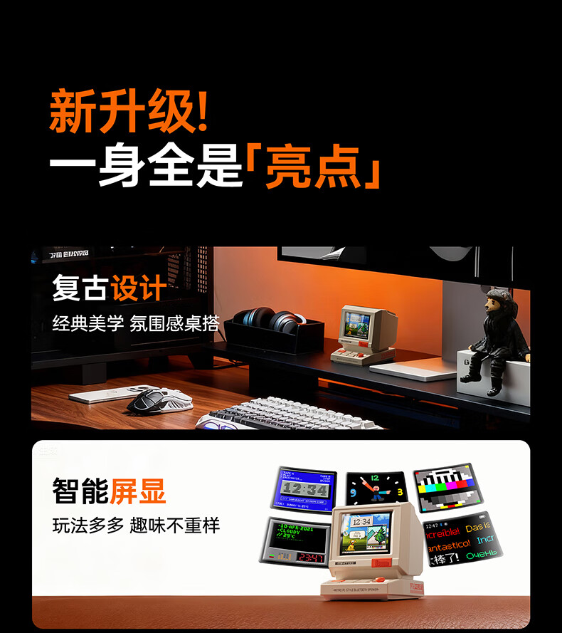 Divoom minitoo Bluetooth speaker desktop speaker retro smart pixel screen wireless portable computer audio table set ornaments for men and women birthday 2026 New Year gifts