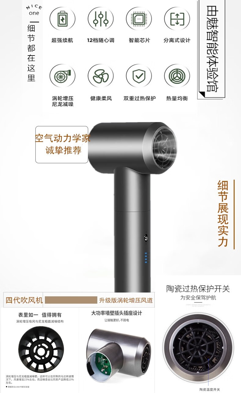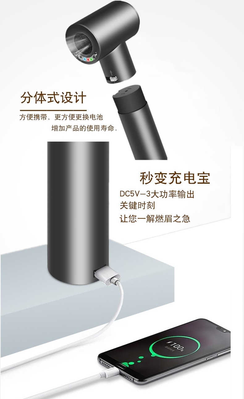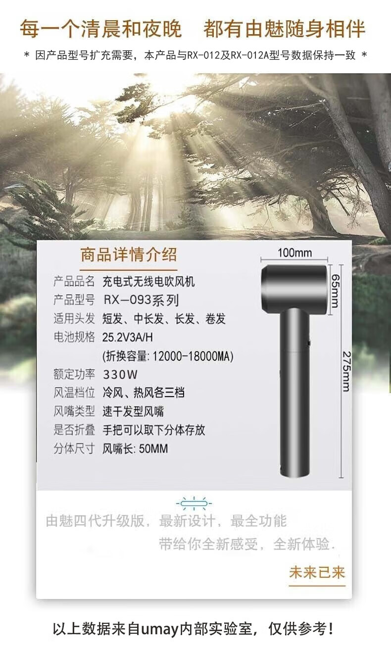 Umay fourth-generation wireless hair dryer for student dormitories, rechargeable, unplugged hot and cold dryer, removable battery, supports USB fast charging, Valentine's Day gift, standard + standard version spare battery, regular recharge