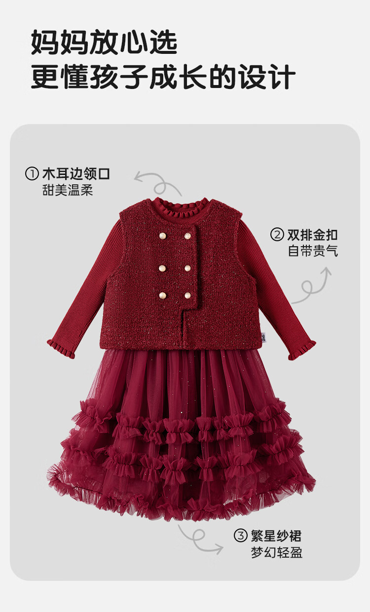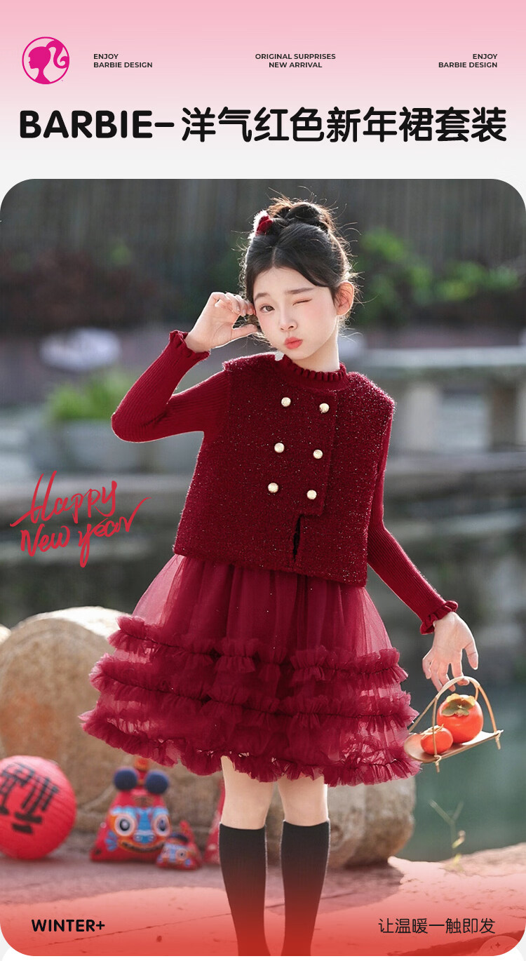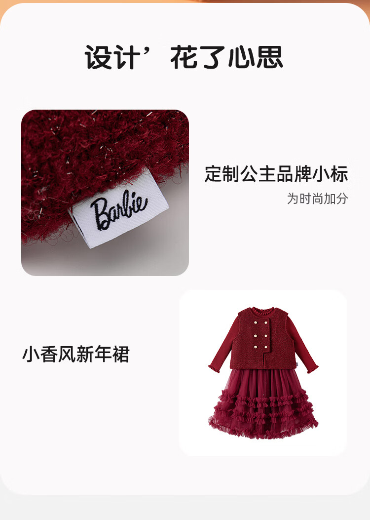 Barbie girls New Year's greetings winter girls' dress high-end princess dress small fragrance suit plus velvet two-piece set BY016