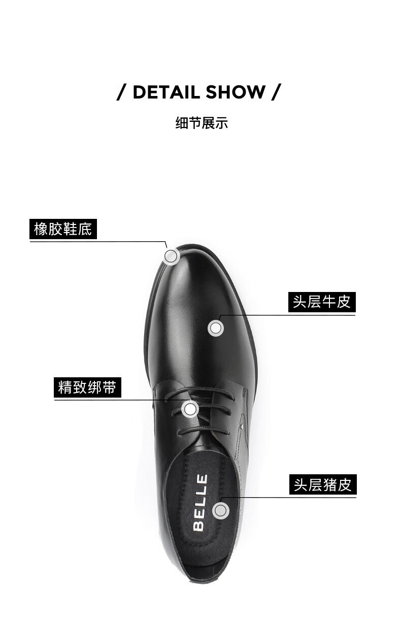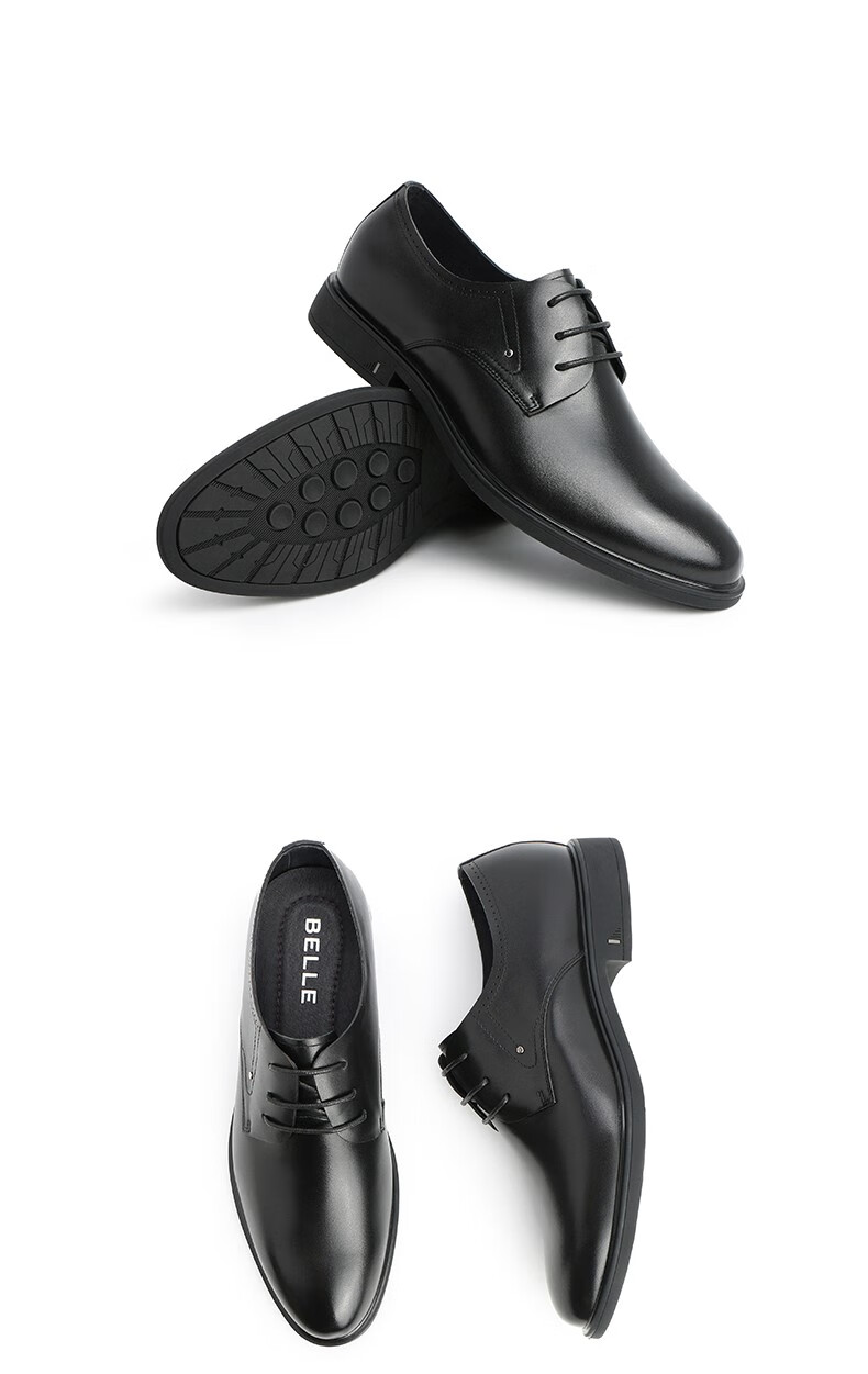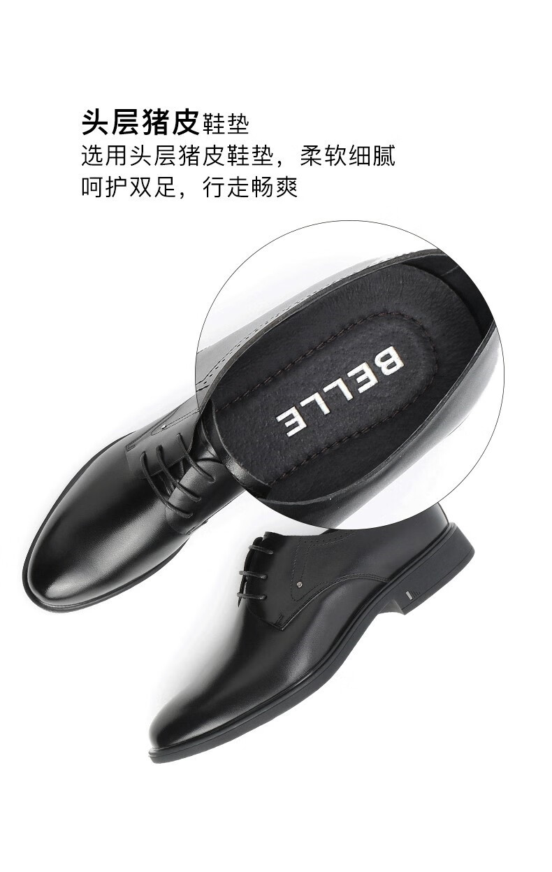 Belle Men's Shoes Business Formal Leather Shoes Casual Height Soft Sole Leather Shoes 10503AM3 Black - Single Liner 41