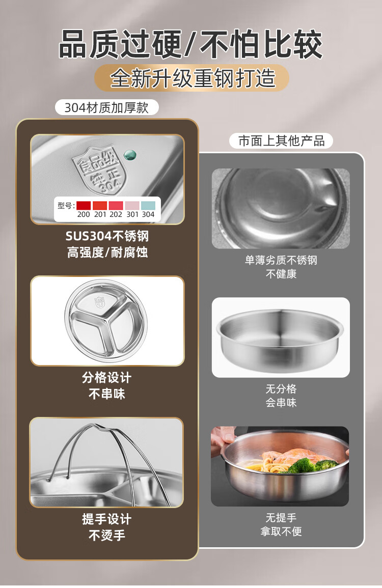 Half-life 304 stainless steel divided steaming tray rice cooker steamer food-grade steaming tray baby food supplement steaming vegetable tray steamer